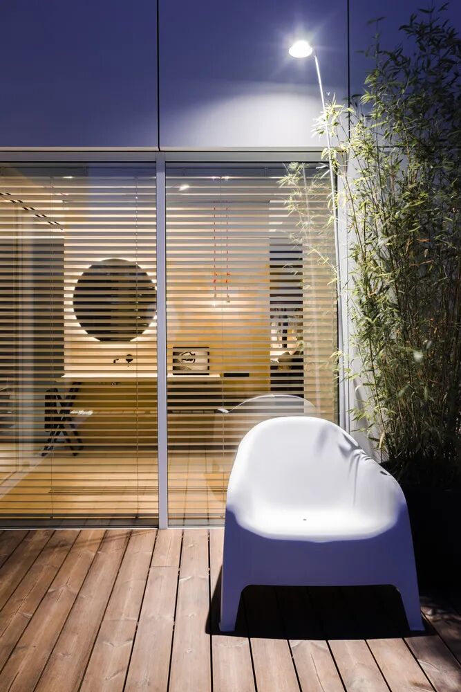 Bucatini LED浴室镜宽阔明晰,纯粹精简的圆弧在光线的映射下,巧妙地勾勒了空间的维度。理性的几何图案配以温暖的光线温度,彰显出精致低调的绅士品格。