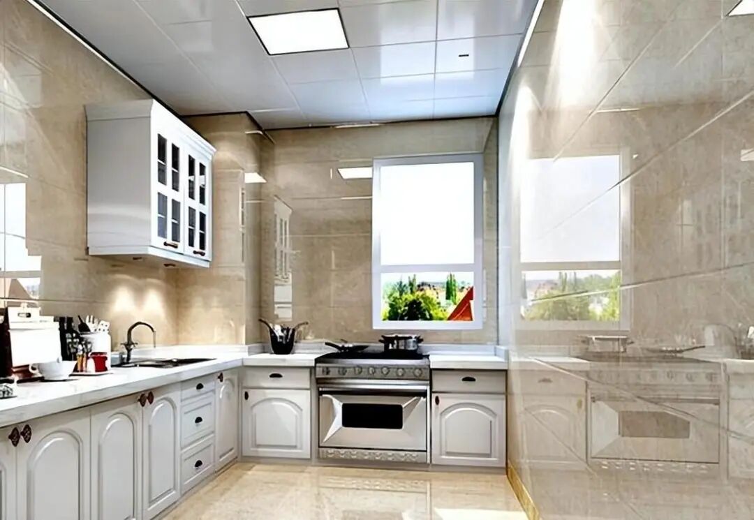 厨房也是要全贴瓷砖的,厨房做饭菜的时候会产生油烟,贴了瓷砖的话,那它就算表面沾有污渍,只需要用布一擦就干净,非常的方便,不需要花费太多时间精力打扫。