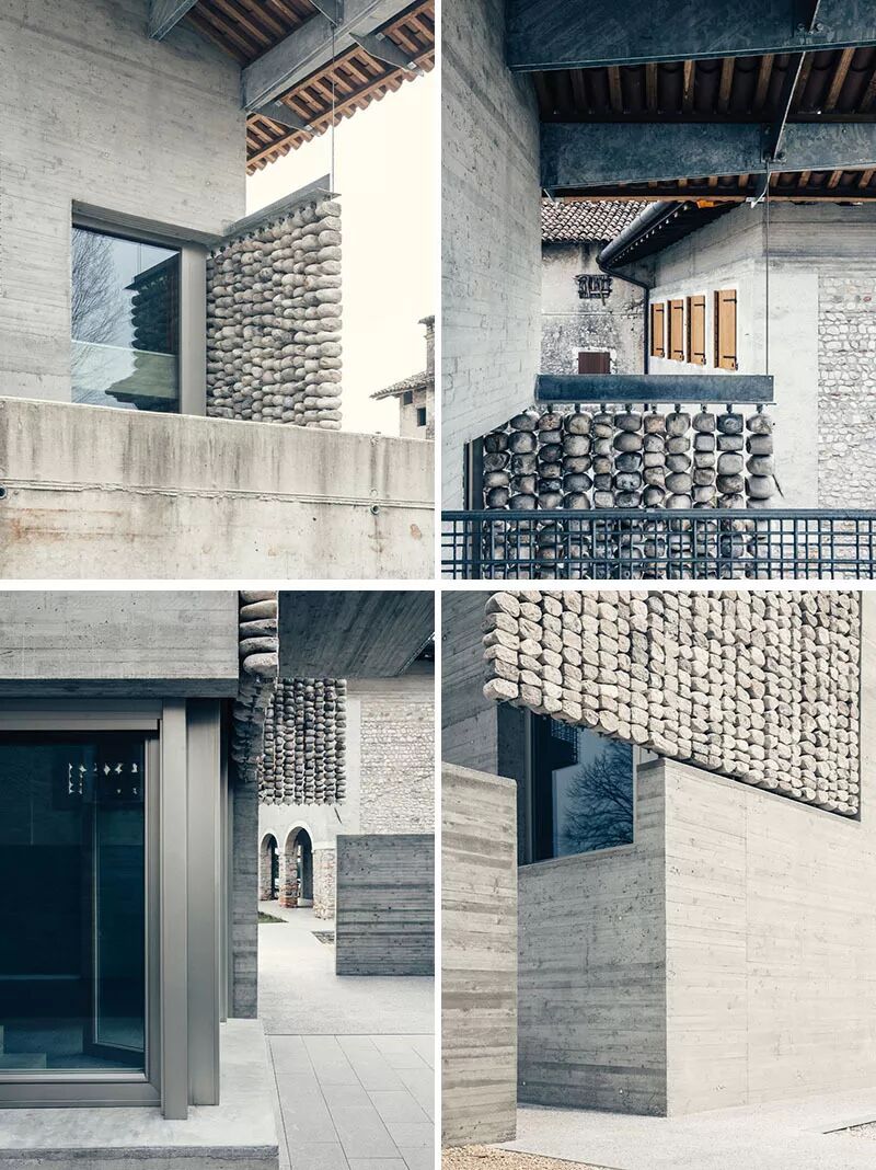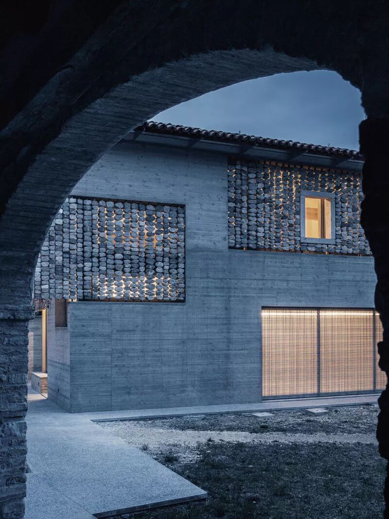 近看细节,这些石帘是用大小大致相同的石块穿孔固定在各种的杆子上的,营造出的氛围,是不是让人很惊喜!‍