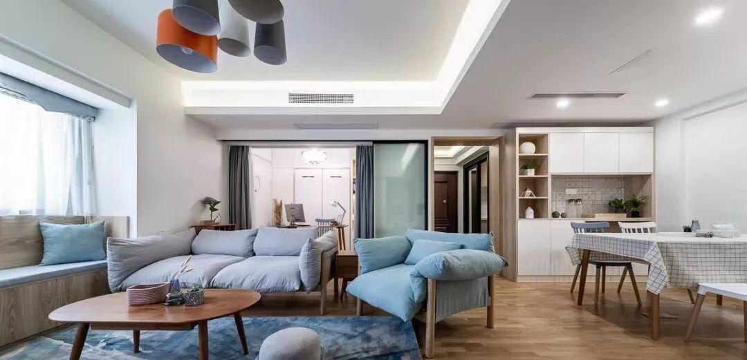 97㎡北欧风格装修,客餐厅、书房全打通,这个家好宽敞!
