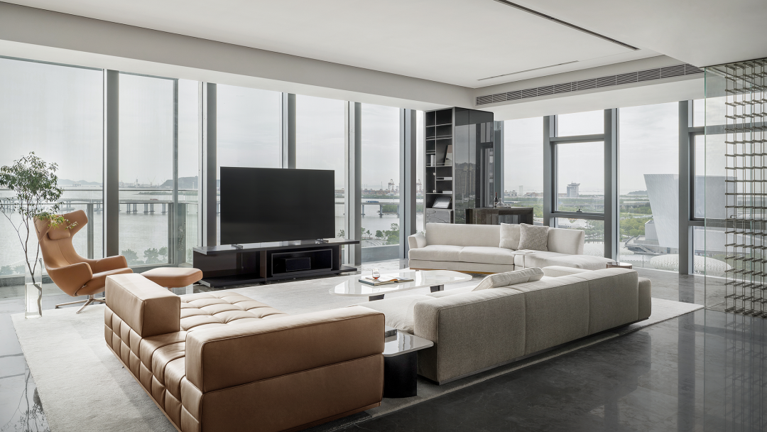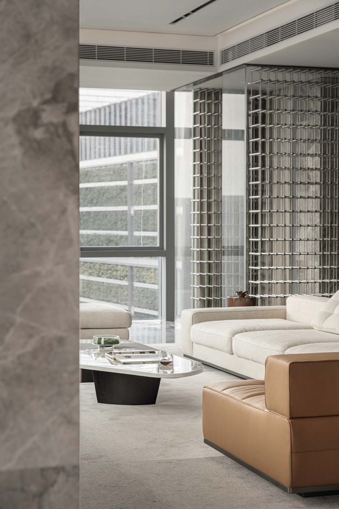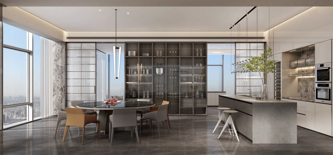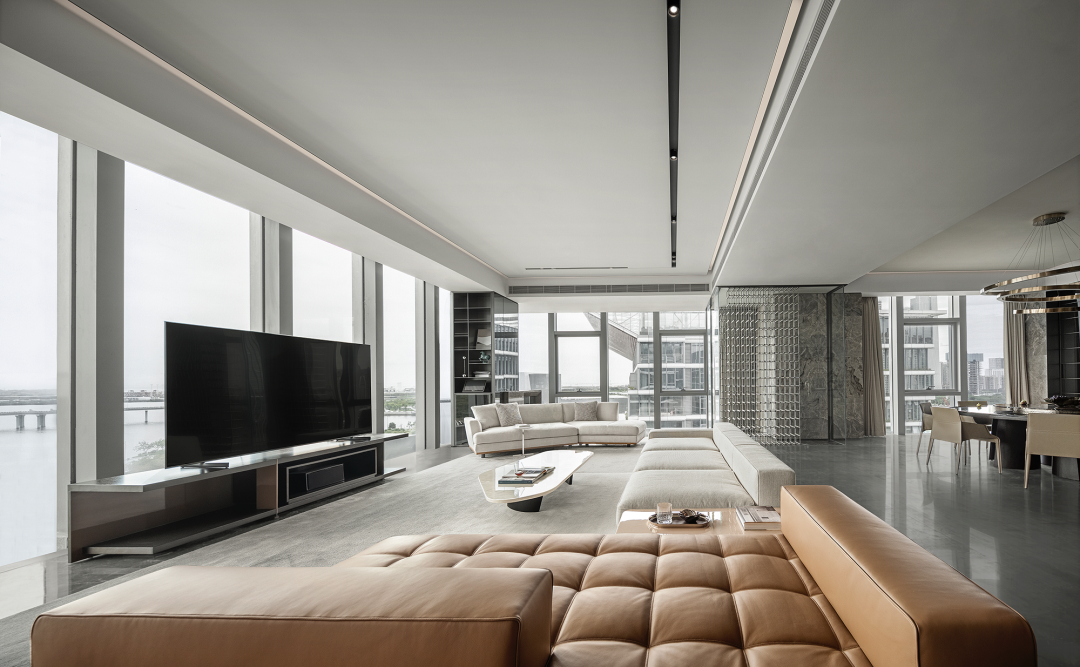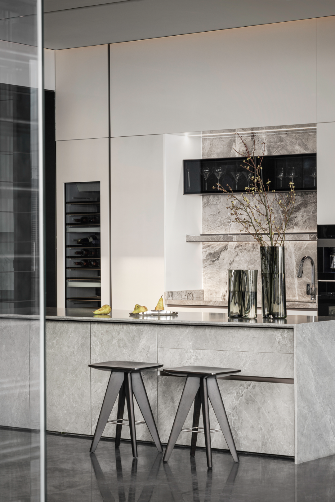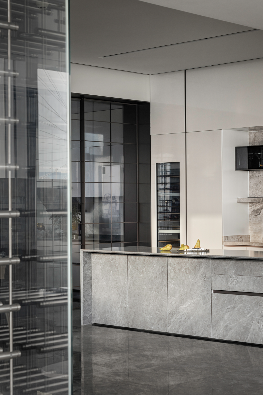 与自我相处,生活本身就是值得细腻品味的艺术品。内建筑式手法打造的观景休息厅,高级灰调马鞍皮柜体,朦胧玻璃材质电动门,以及闪耀金属光泽的酒架......成为随处可见、精心设置的巧思与细节。空间中呈现的精简,温和,质感,每一处蕴含品质哲学的小小细节,从不刻意,如植物般默默生长散发能量,巧妙扣映着生活理想主题。容纳丰富情感的聚所,映衬出精神层面的富足,从容于都市熙攘与心灵安逸间转换自如,成为滨海现代URBAN LIFE最完美的解答与诠释。