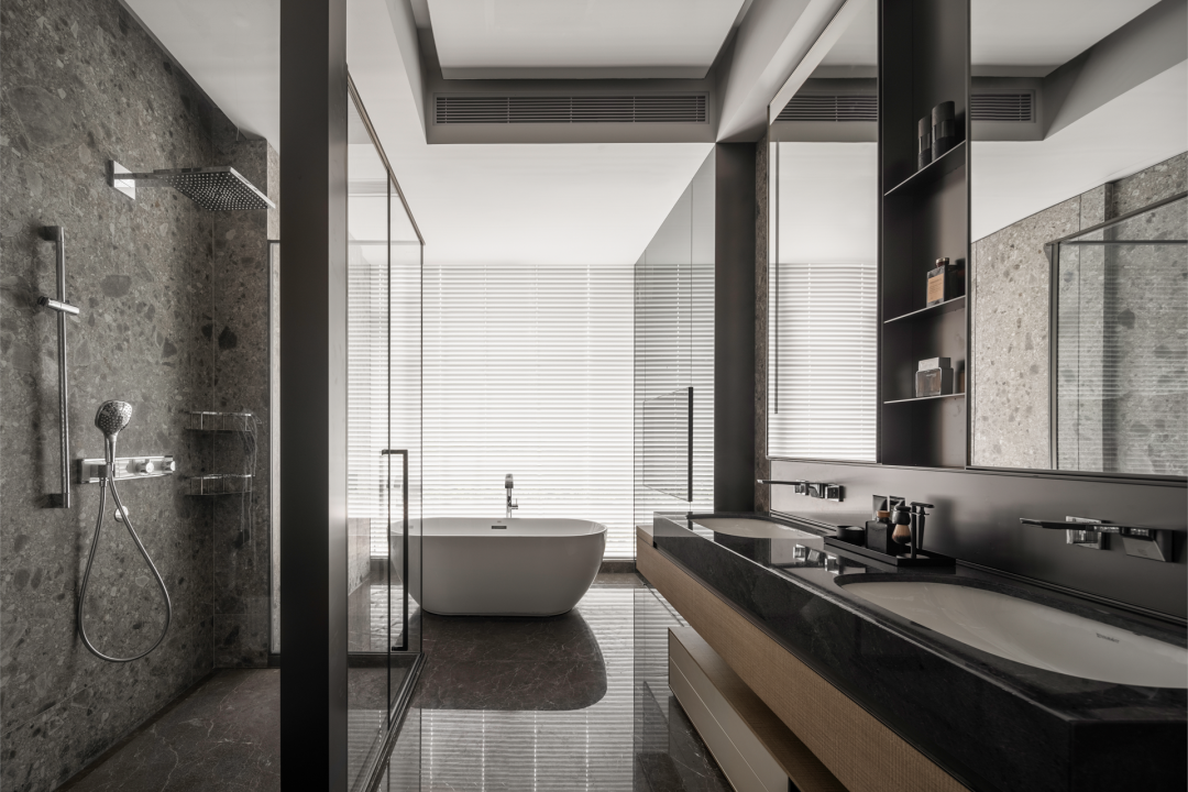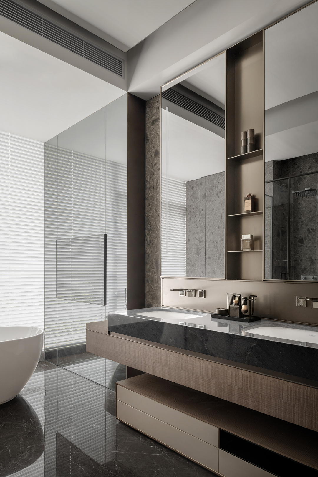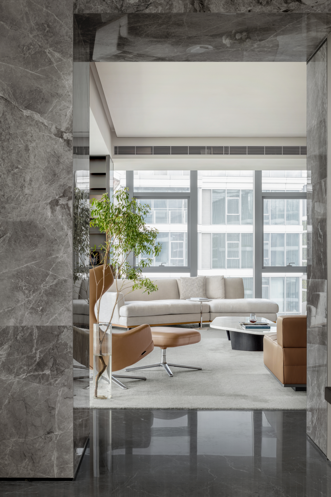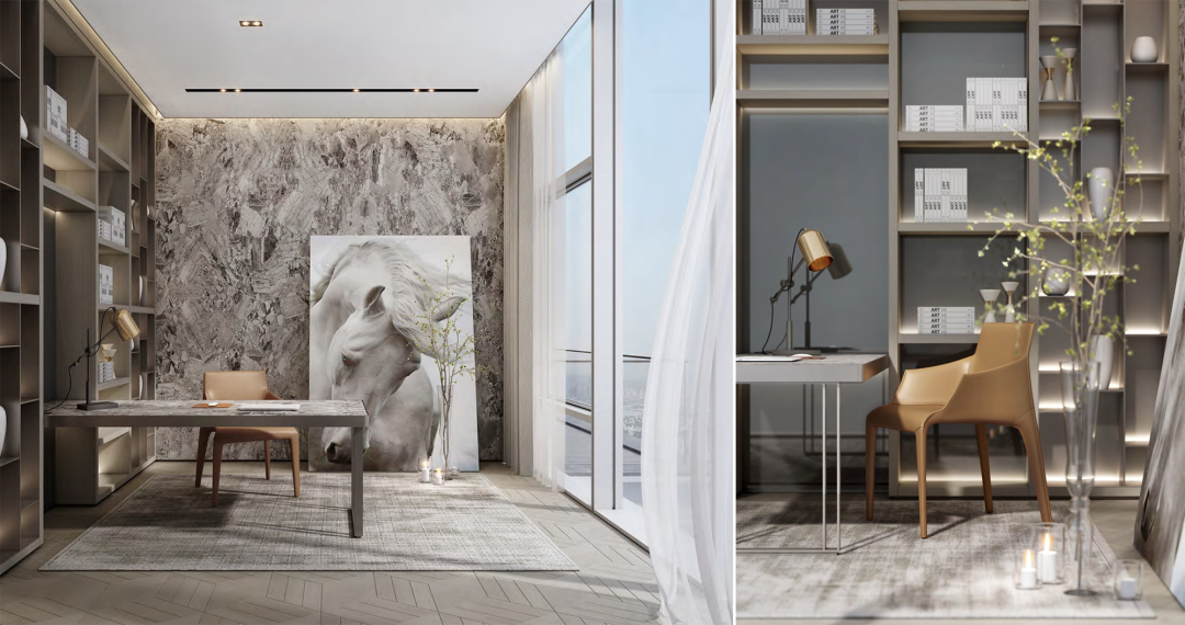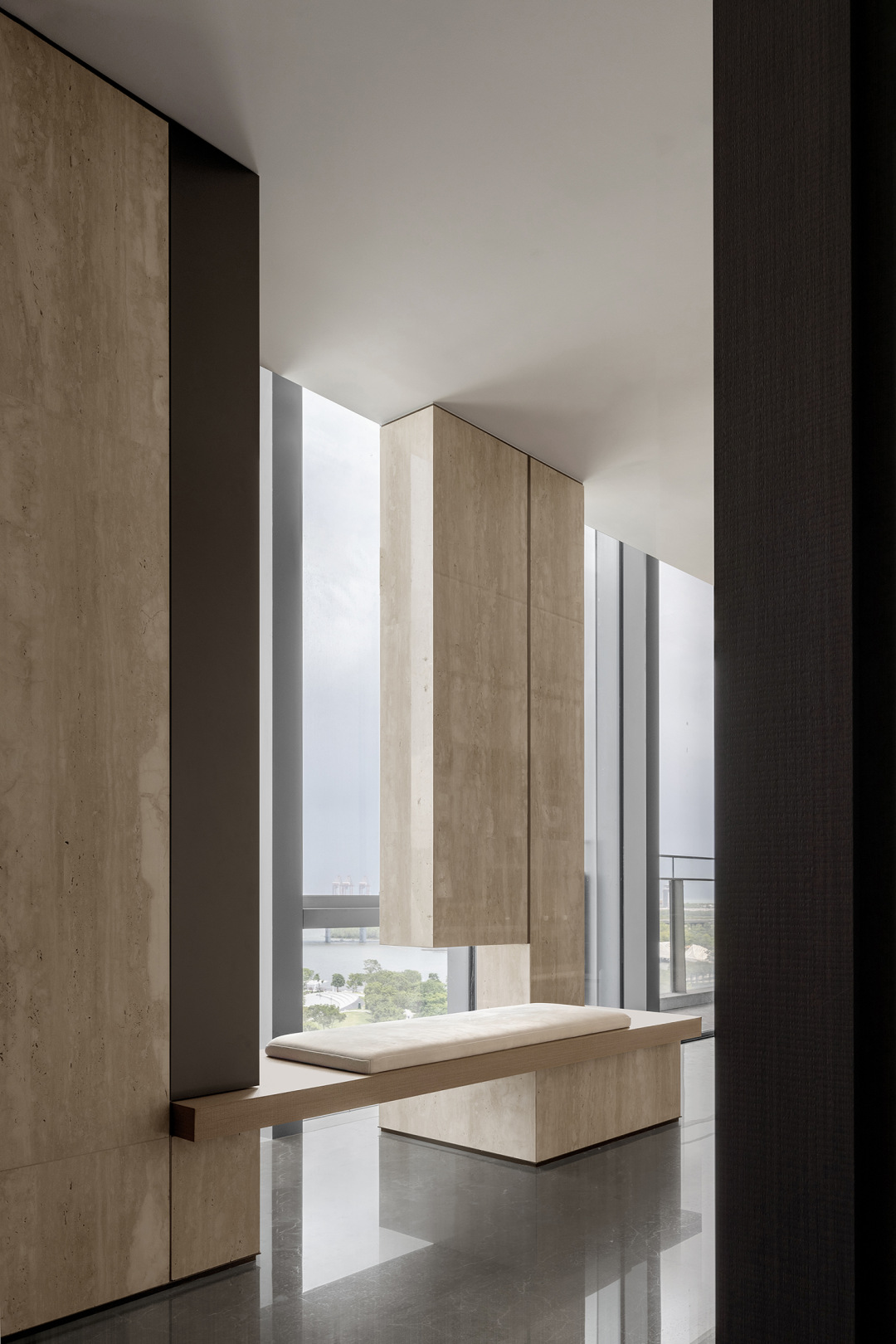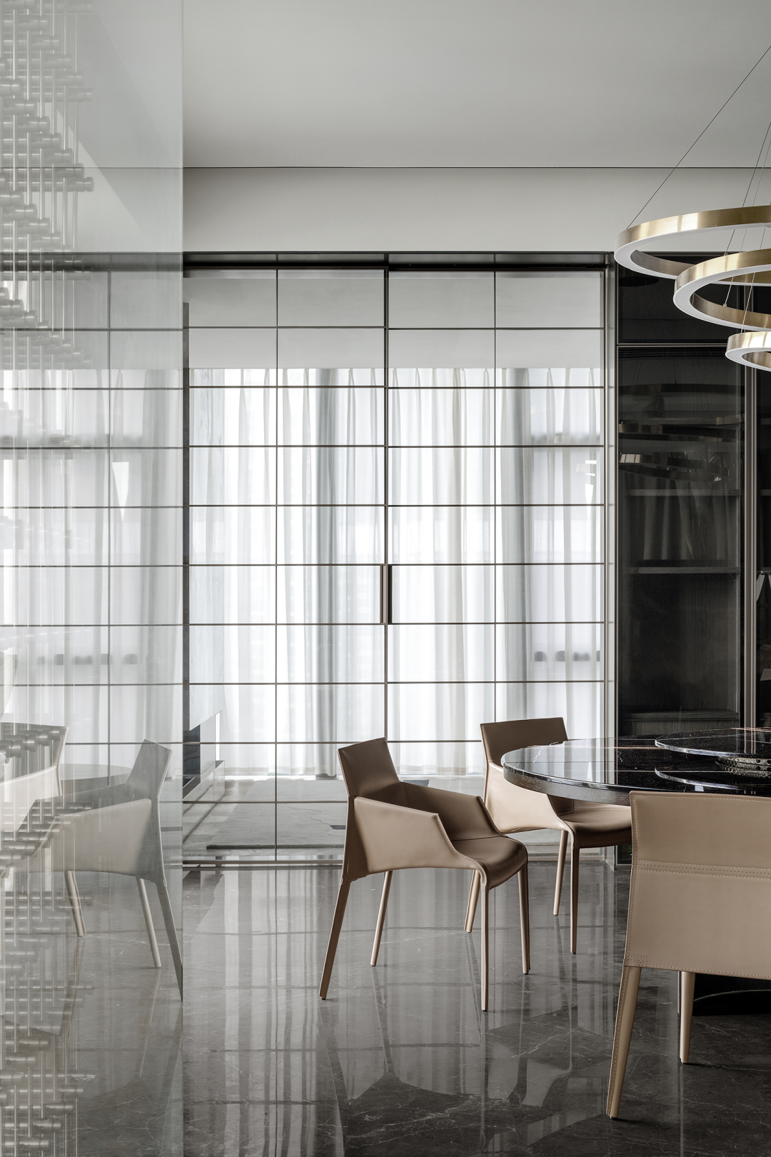 与自我相处,生活本身就是值得细腻品味的艺术品。内建筑式手法打造的观景休息厅,高级灰调马鞍皮柜体,朦胧玻璃材质电动门,以及闪耀金属光泽的酒架......成为随处可见、精心设置的巧思与细节。空间中呈现的精简,温和,质感,每一处蕴含品质哲学的小小细节,从不刻意,如植物般默默生长散发能量,巧妙扣映着生活理想主题。容纳丰富情感的聚所,映衬出精神层面的富足,从容于都市熙攘与心灵安逸间转换自如,成为滨海现代URBAN LIFE最完美的解答与诠释。