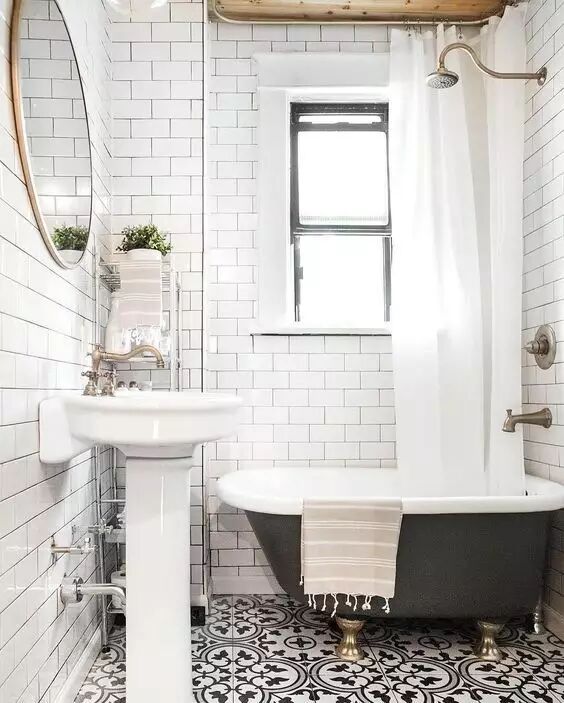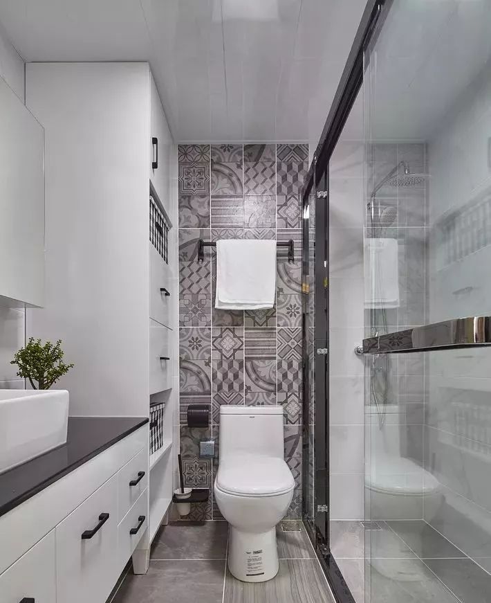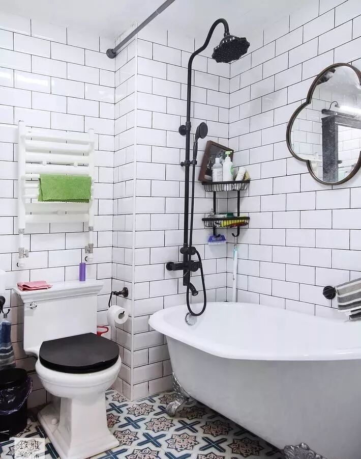 还有一种便是在卫生间的地面上铺贴花砖,营造出一种“低头是复古,抬头是时尚”的视觉效果,空间格调骤然提升。