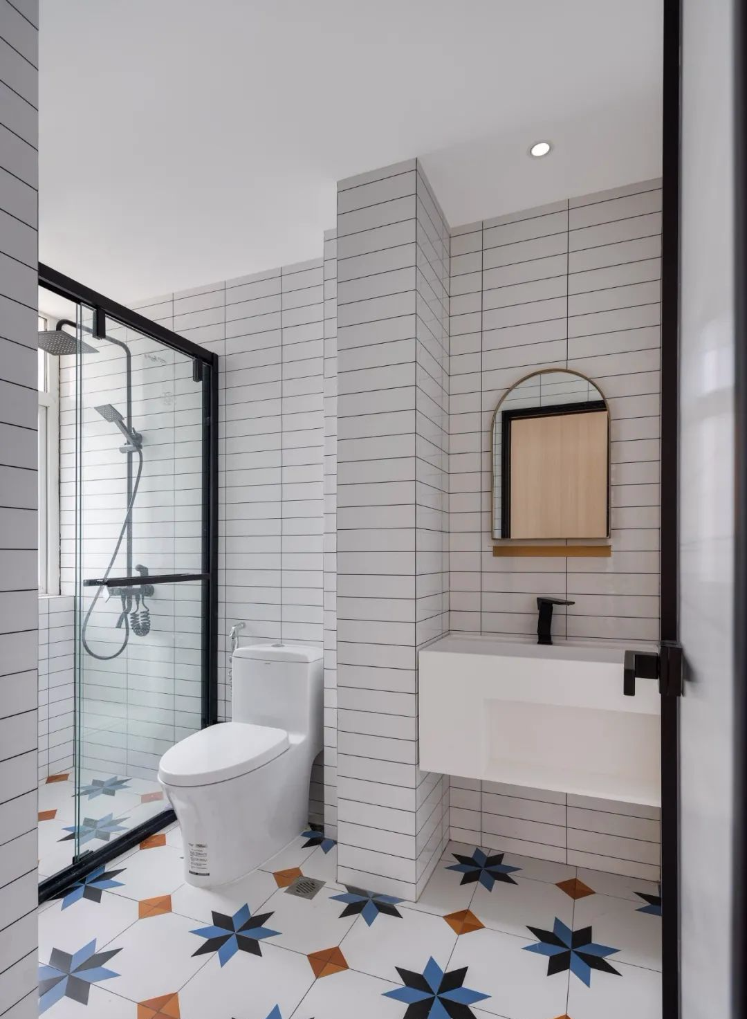 一个家的精致程度,是透过方方面面体现出来的。卫生间作为家中最私密的区域,常常在美感追求中变成了将就。比如最为常见的瓷砖铺贴,大部分家庭都采用清一色的素色瓷砖,来保证视觉上的美观与清洁。可是千篇一律的铺装方式,难免让人感到乏味。有没有更新潮、更独特的瓷砖铺贴技法,为平淡的家装制造亮点呢?01