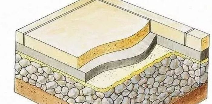 石材铺装,分为三层:
