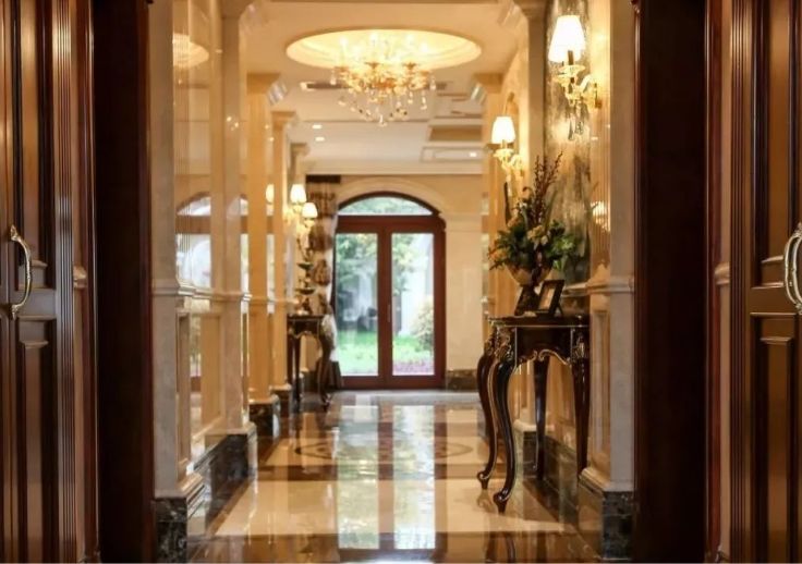 ①、在地面大理石用材的选用上,我们要根据石材的特性给甲方提出正确的意见,像木纹石等石材材质较松软的石材,像金世纪米黄等石材裂缝较多的石材,就不易选作地面石材使用。