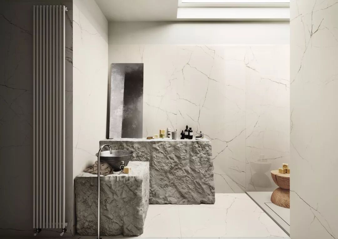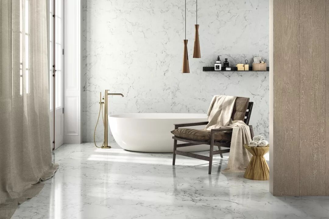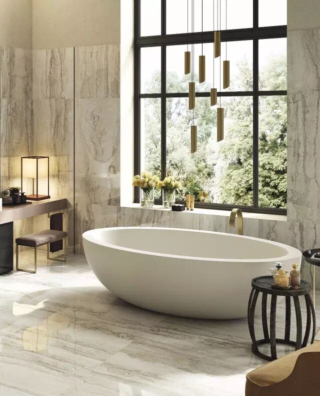 大家都知道,瓷砖规格越大,效果也就越气派。大板上墙,从视觉上给人一种延伸扩大的感觉,使空间更显开阔大气。尤其是石纹或者木纹的大板铺贴,极大还原自然的纯粹之美,搭配雅致的设计风格,妥妥呈现高级感!