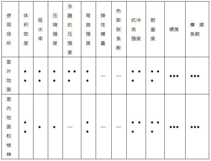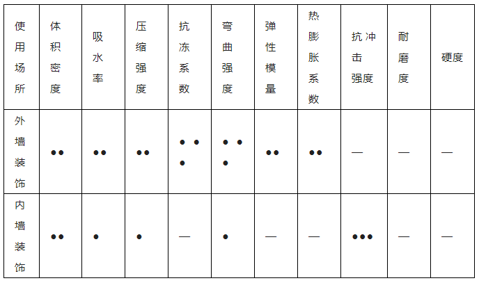 2. 选用时可依据其重要性,对石材性能要求适当调整