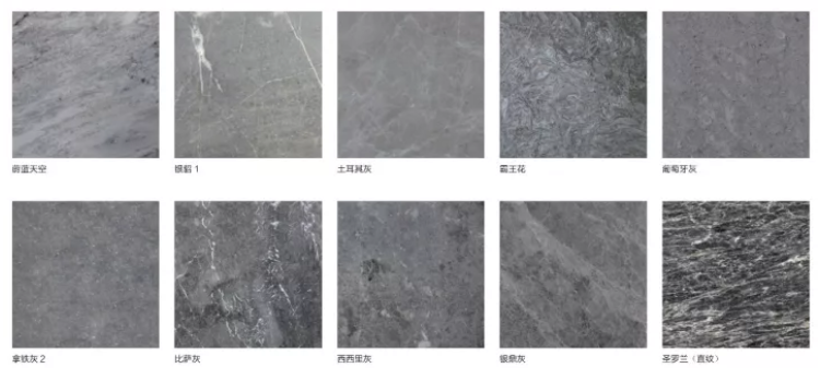 花岗石:蓝色一绿色一黑色一纯白色一红色一黄色一紫黄一灰白色一灰色