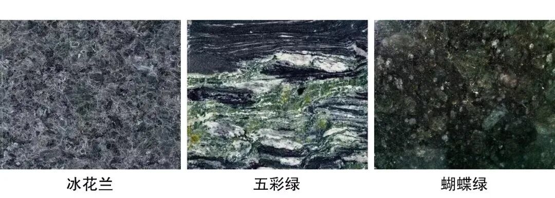 蛇纹石大理石:主要由蛇纹石(硅酸镁水合物)组成,绿色或是深绿色,伴有白云石,方解石或是菱镁矿等组成的脉纹。