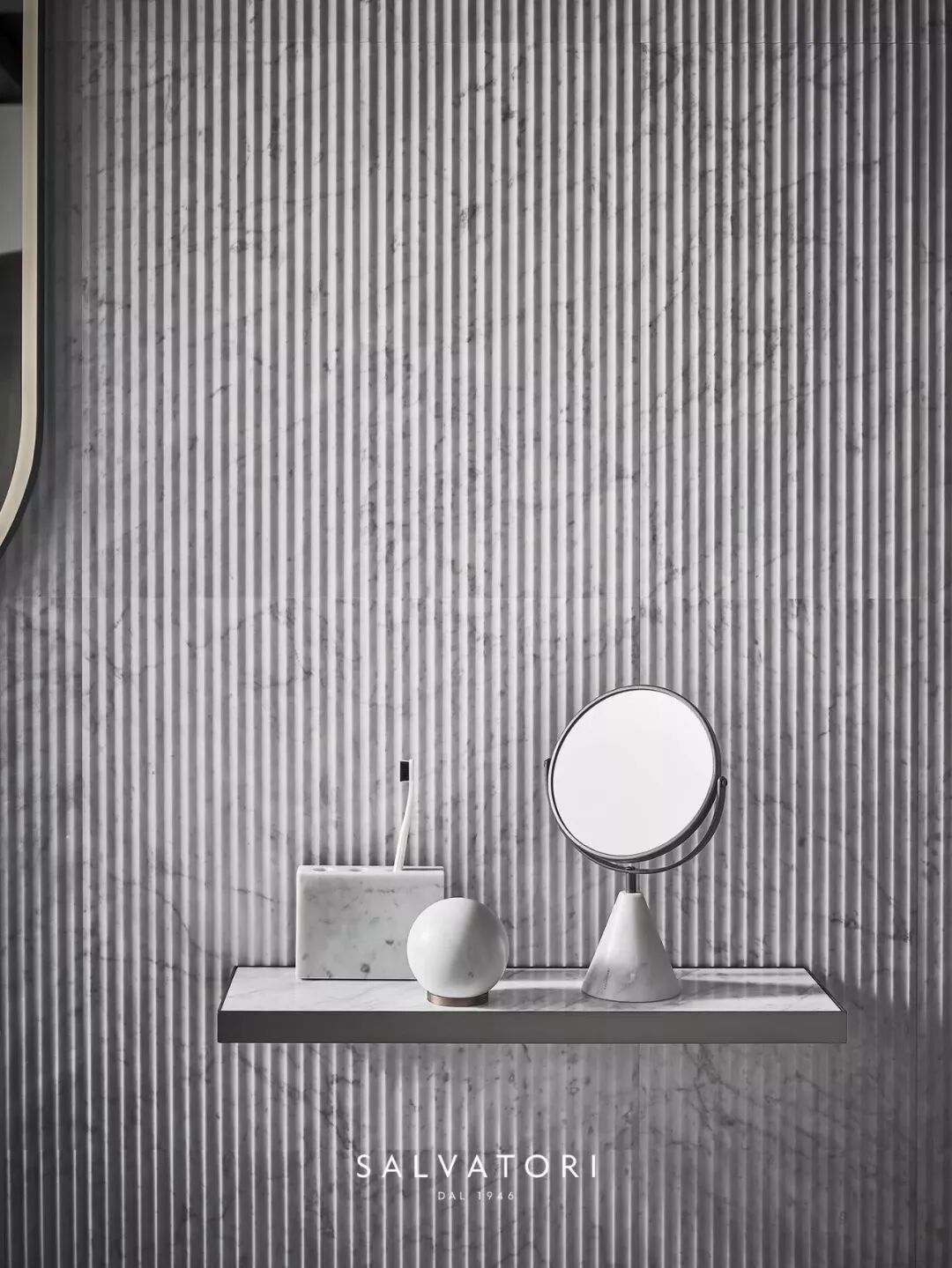 设计师与 Gabriele Salvatori 一起对大理石进行了表面处理,以增加和扩展石材的粗加工。将精确的机械切割转变为粗切割,从而在大理石表面上产生了「雕刻」效果。