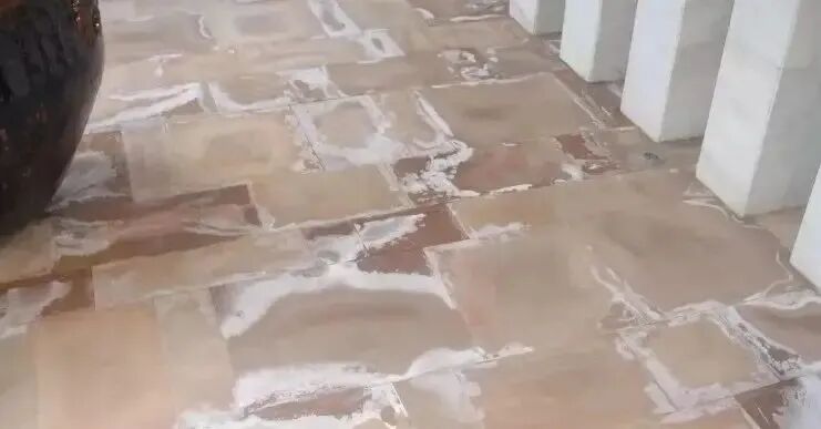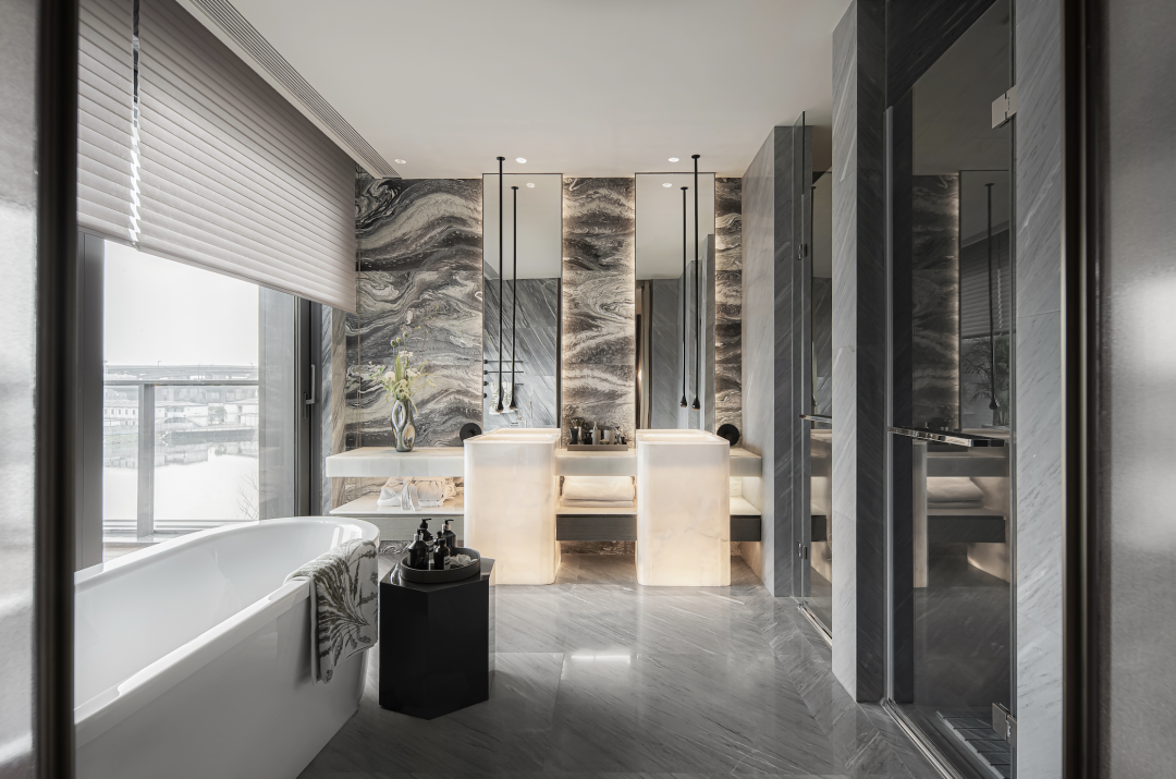 A:水洗面也叫水冲面,是用压缩水枪把高压水喷出来,利用水的高速动能冲刷掉石材表面一些质地较软的部分,形成自然的凹凸不平表面效果,同时有时候为了追求一定的凹凸效果,会在水中加入一些磨料,比如河沙或金刚沙等。