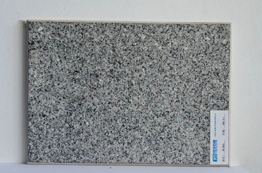 用形如荔枝皮的锤在表面敲击而成的板材。