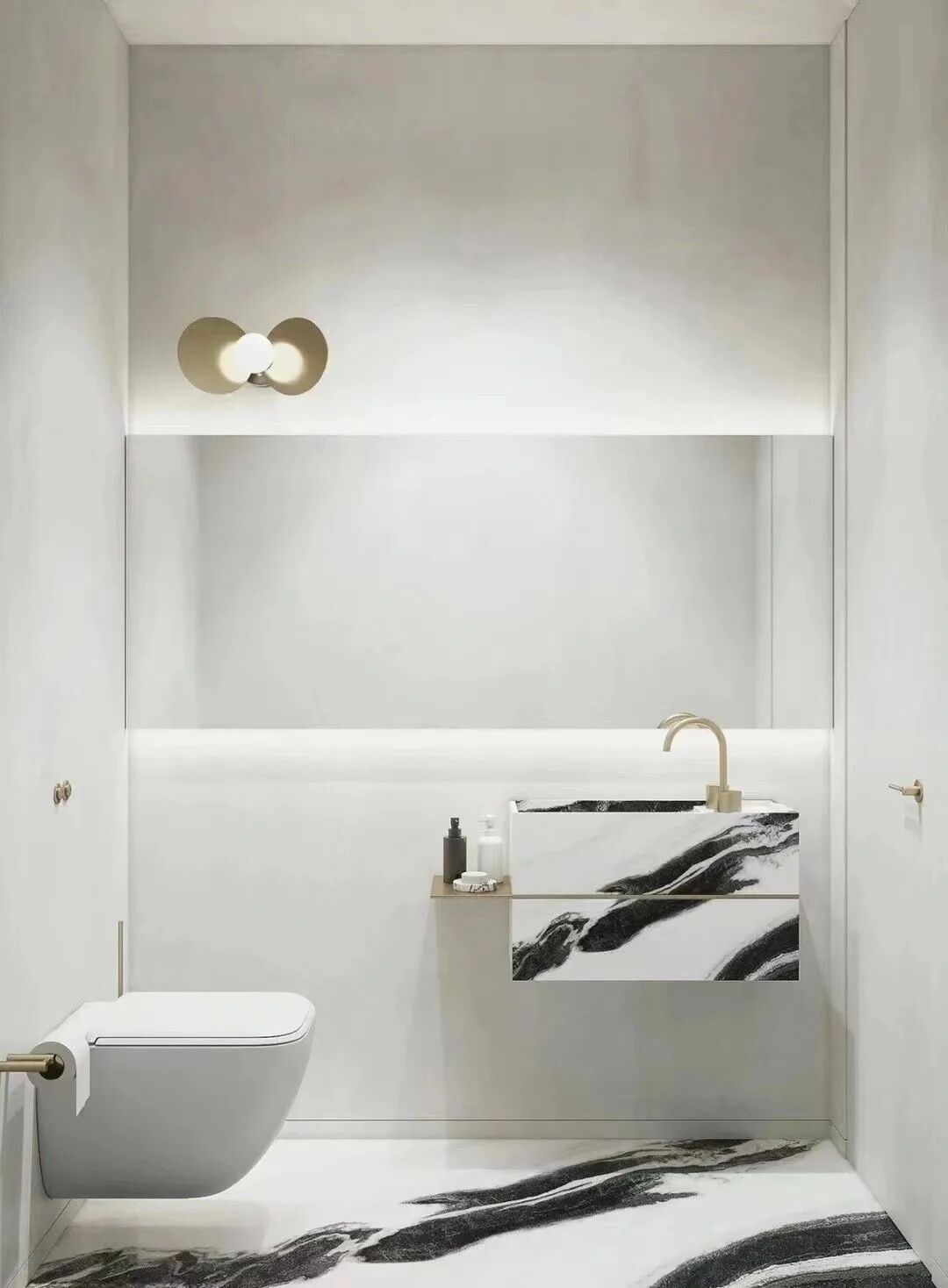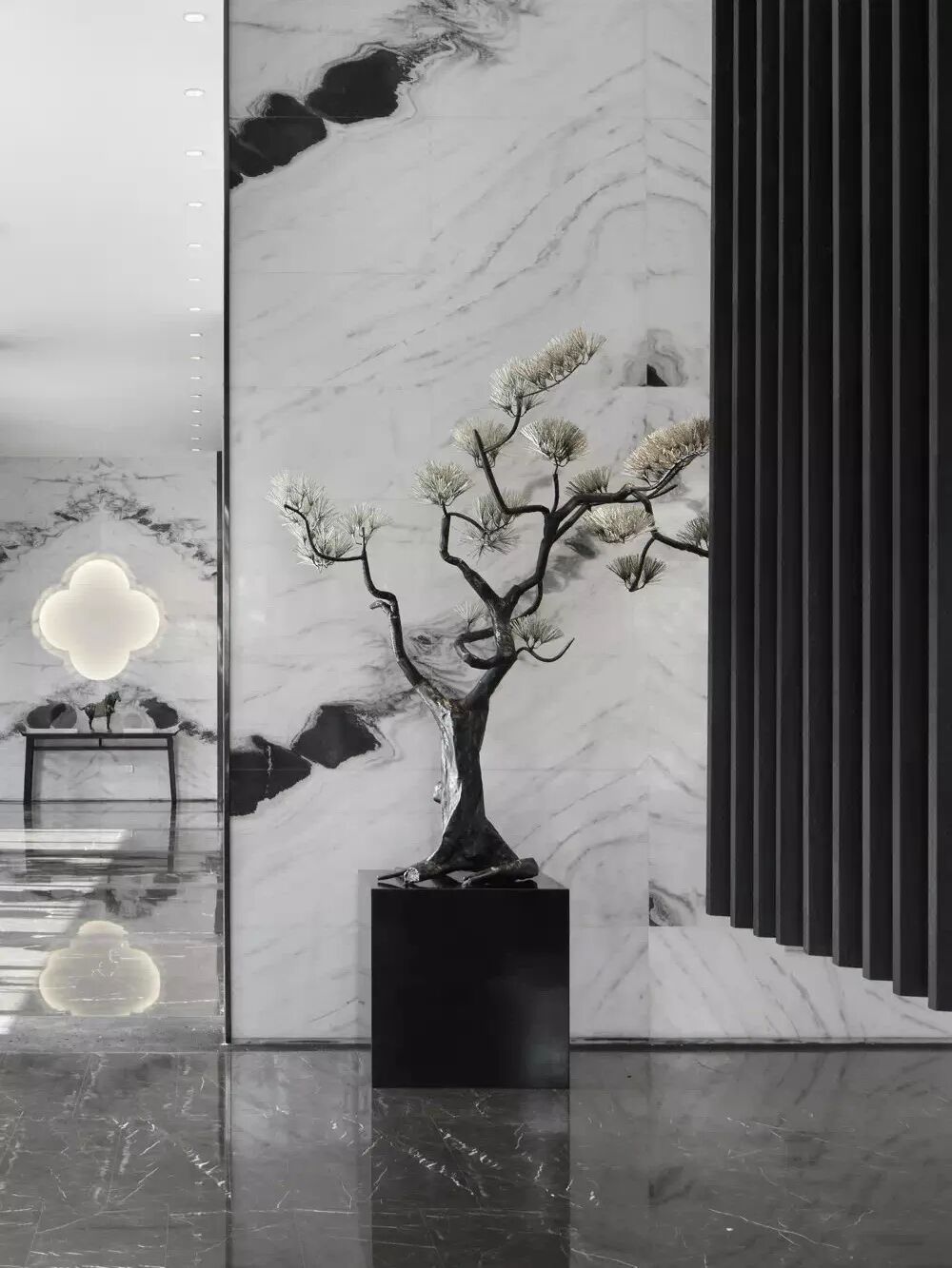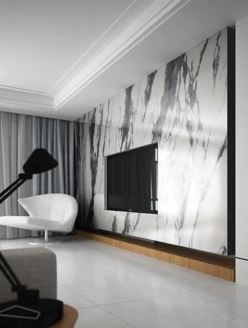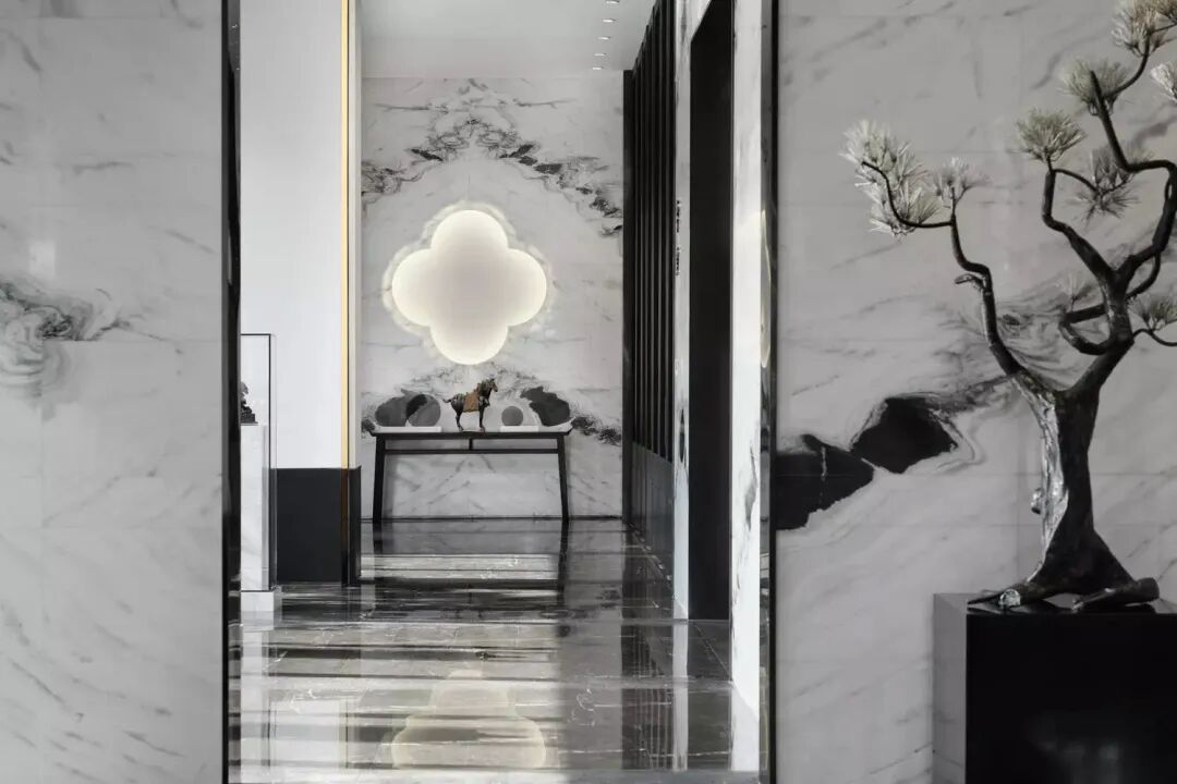 下面我们就看一下设计师手下的熊猫白石材在室内空间中是如何表现的。