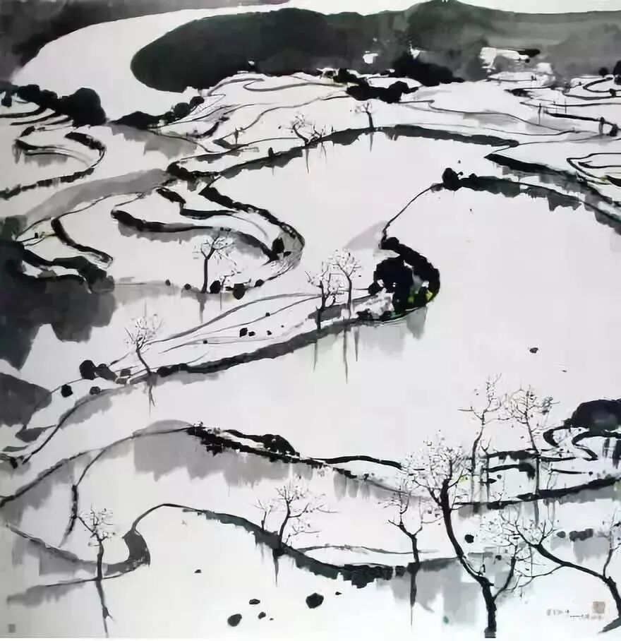 有怀素狂草的疏放不羁,黑白纹理相间,白中挥洒熏灰、黑墨,有着吴冠中水墨的精致诗意,堪当“国宝”之称。