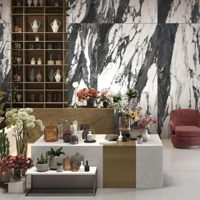 熊猫白板面光滑,行云流水,浑然天成,在众多奢石大理石中展现中国元素。