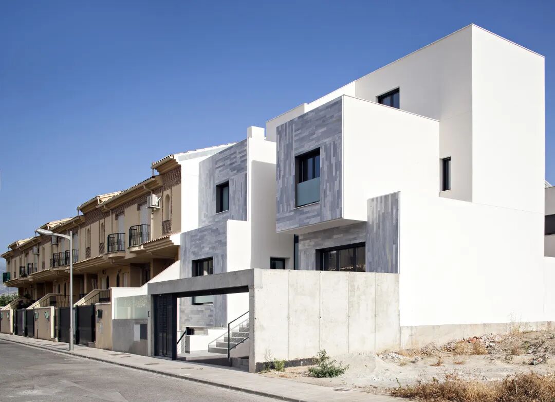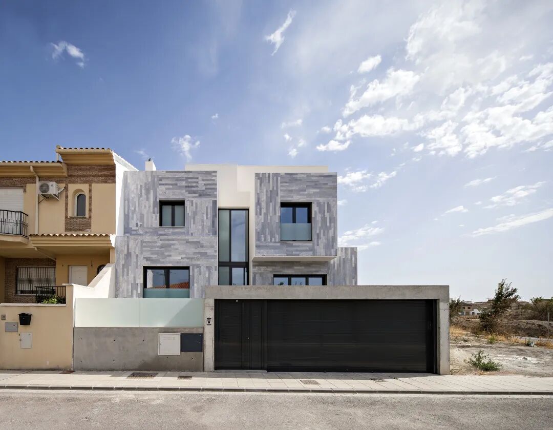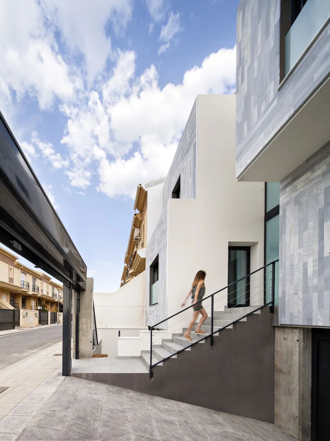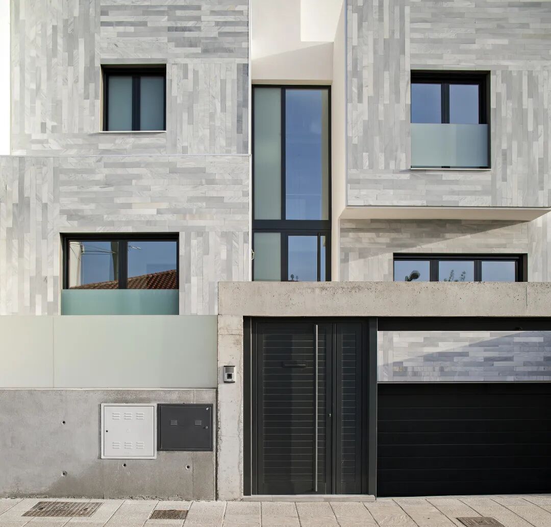 建筑师利用了当地具有精美纹理的大理石作为建筑外立面的覆层,将该住宅与其它联排别墅区别开来。