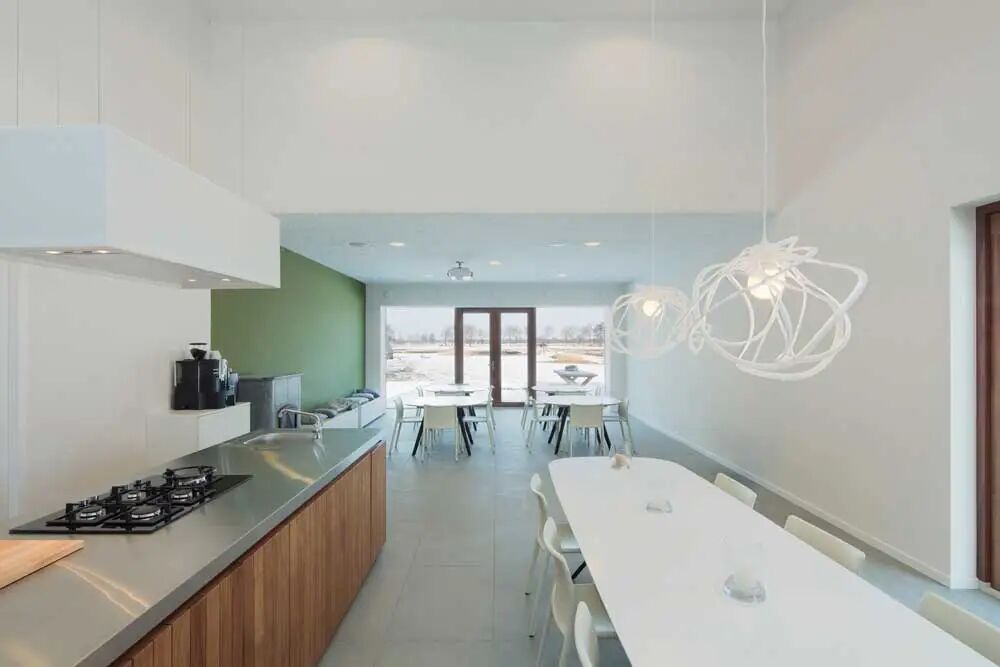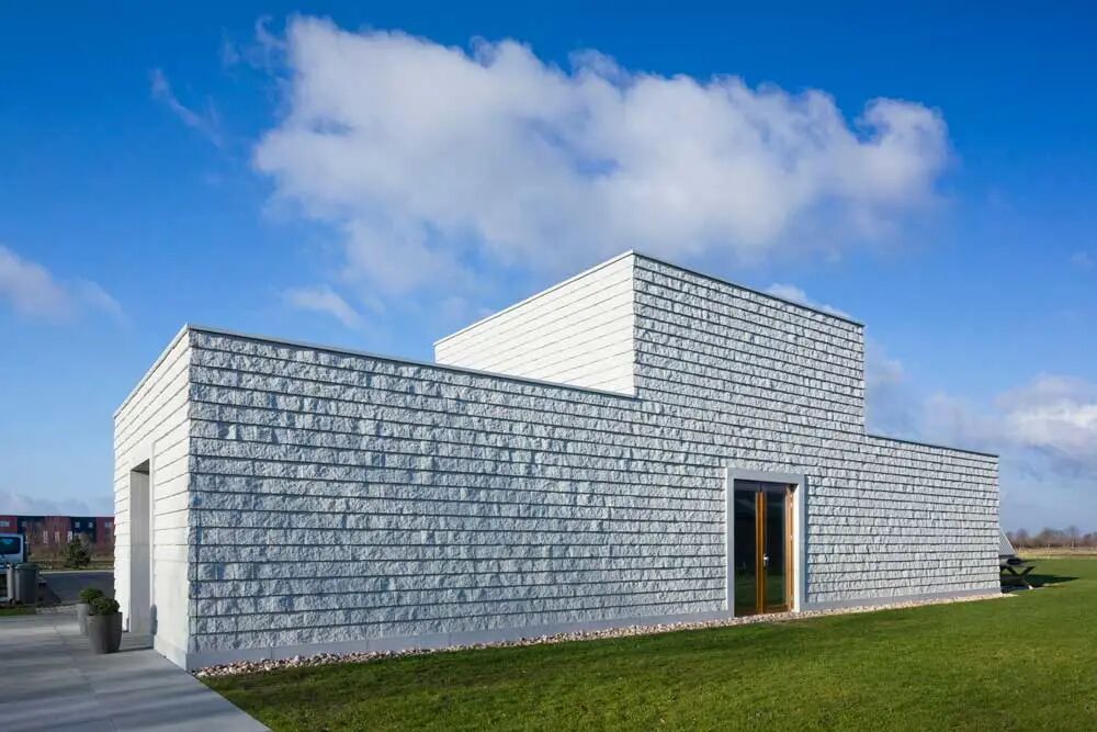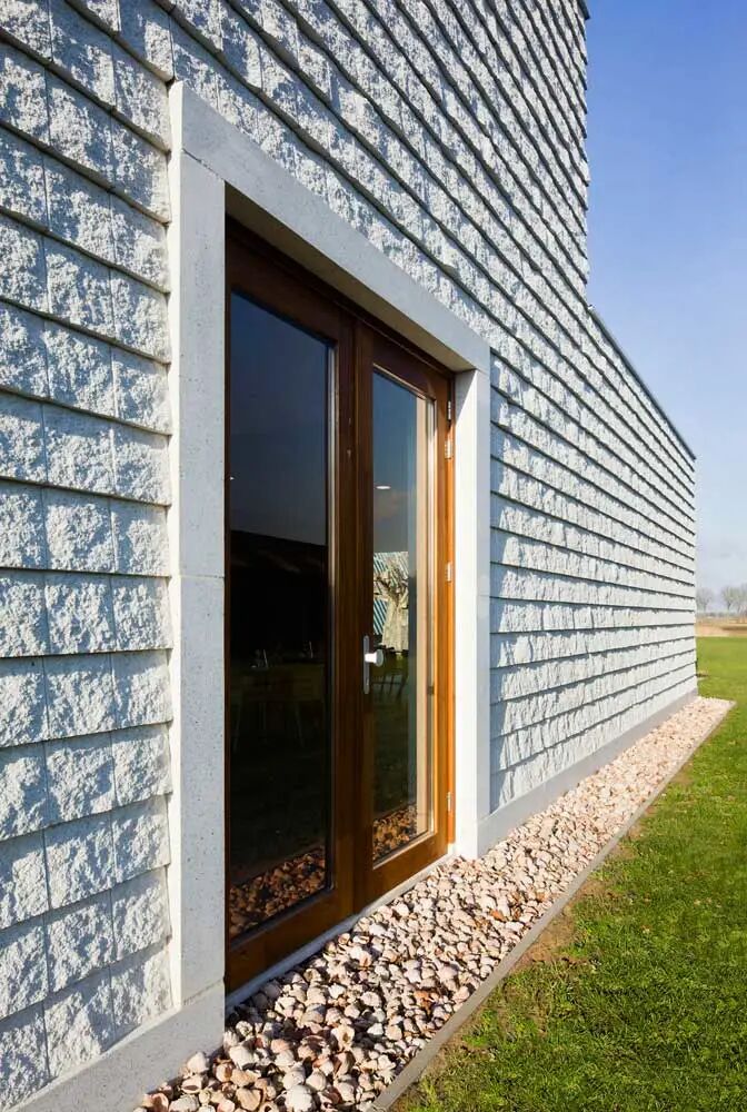 这个坐落在荷兰农村里的小房子是一个关于蘑菇(食用菌)的信息中心。建筑的外观采用了混入挪威大理石的灰色混凝土,其拼接的方式十分别致,展现出波浪般的起伏阴影与丰富饱满的粗糙质感。内部的墙面、地板、天花则是光滑的表面,与建筑外立面形成了强烈的对比,展现了精妙的设计与工艺。