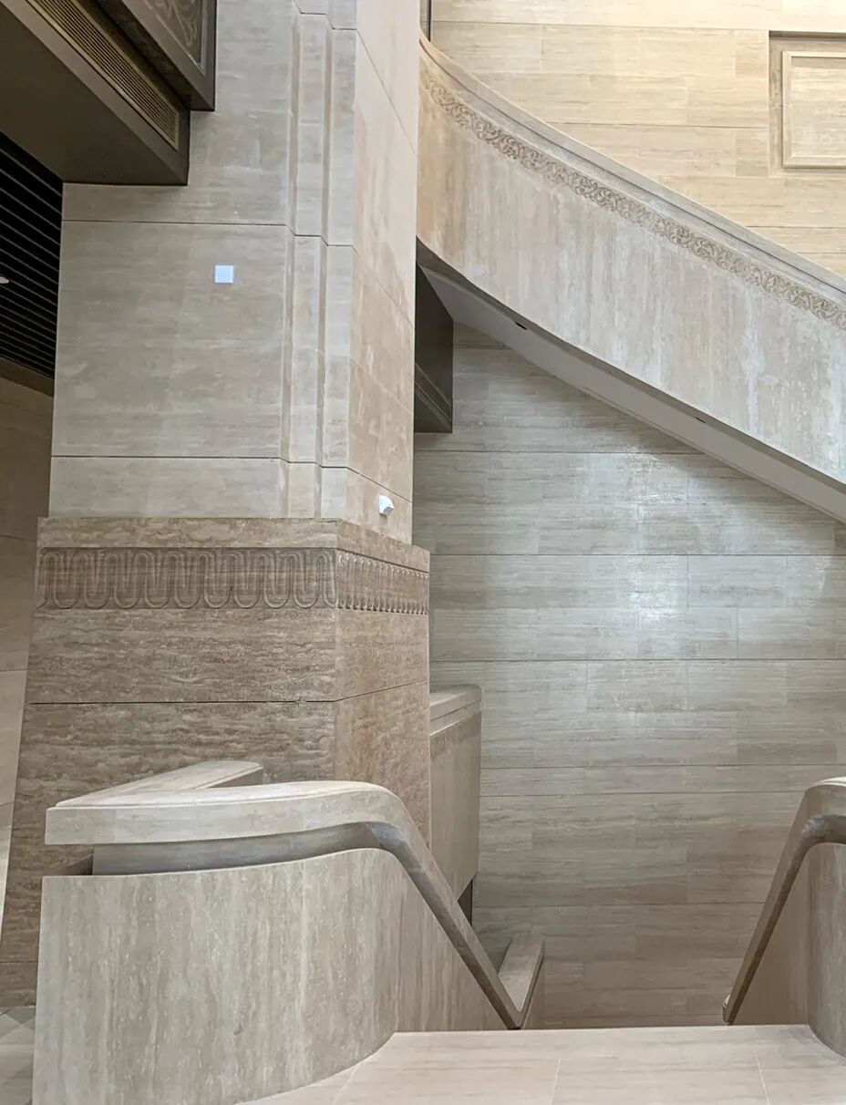 无锡博物院,是一座集陈列展示、科学研究艺术欣赏于一体的地方综合性博物馆。采用的黄色洞石色泽感不会过于饱满或是刺眼,其拥有高贵纹理,浅褐深褐交融共存,不同浓淡层次分明。