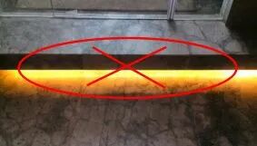 原设计踏步反光槽下口未考虑LED的反光,导致地面出现一条清晰的反射灯珠,影响整体美观效果。