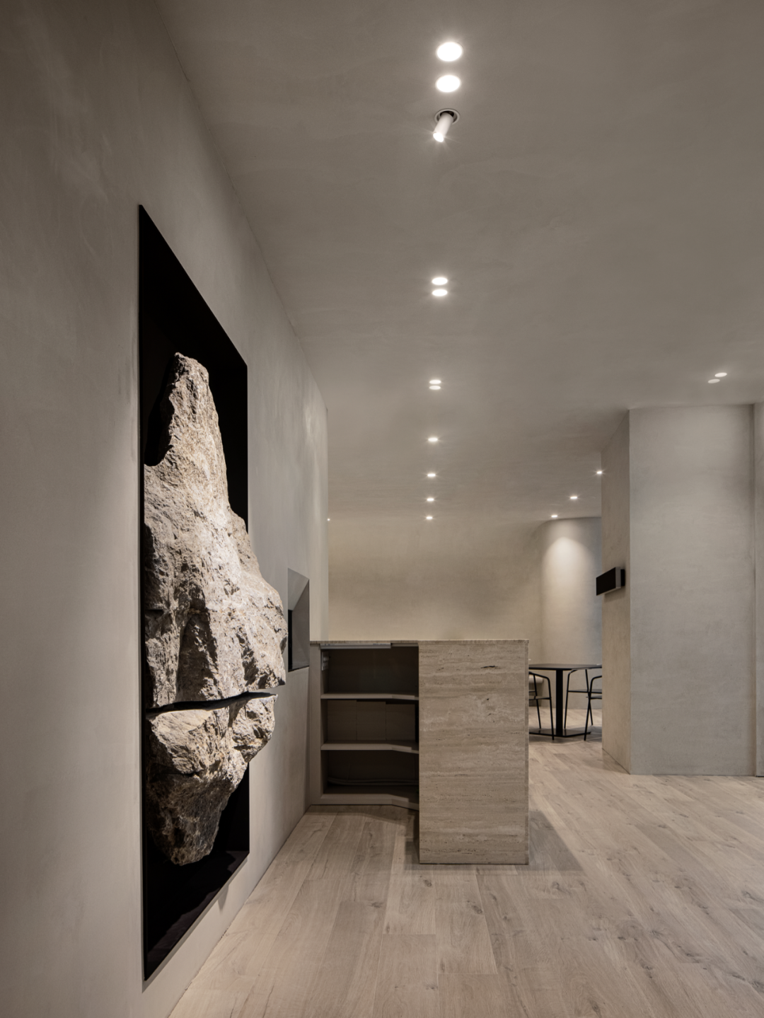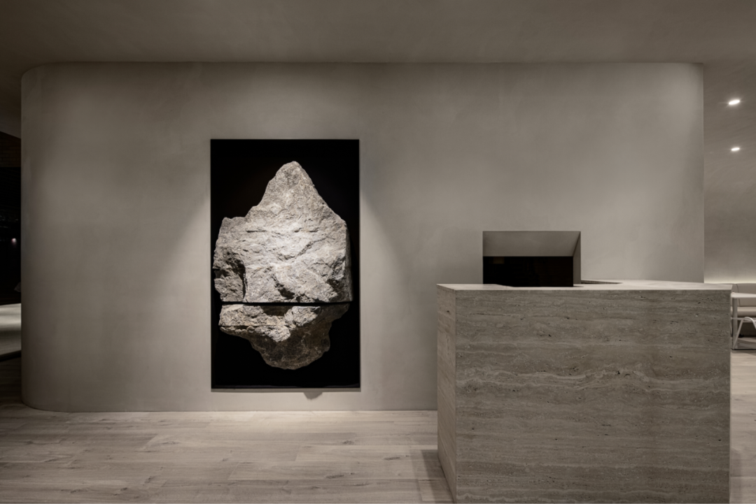 一个引人注目的焦点是一个800公斤重的壁挂式巨石,这标志着café注重食材精髓和非人工的慢餐菜单的品牌标识。