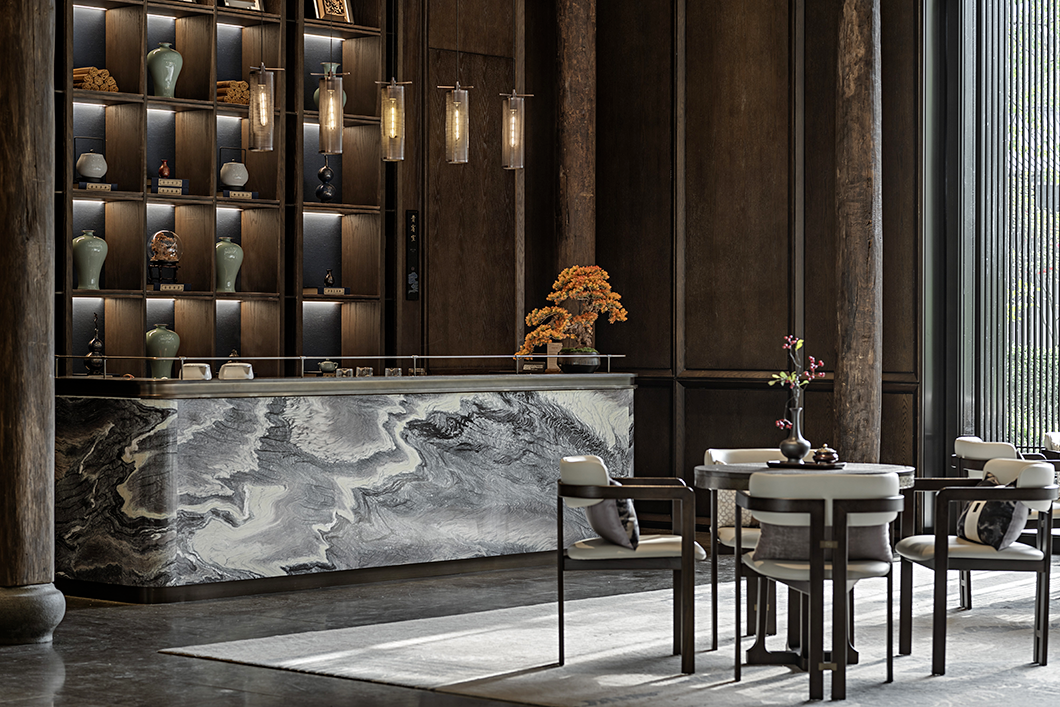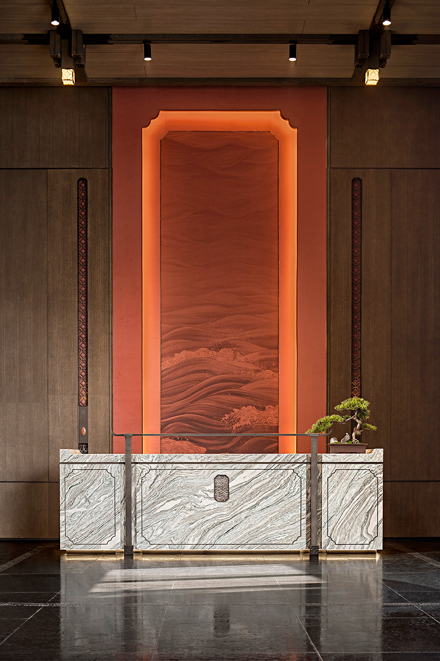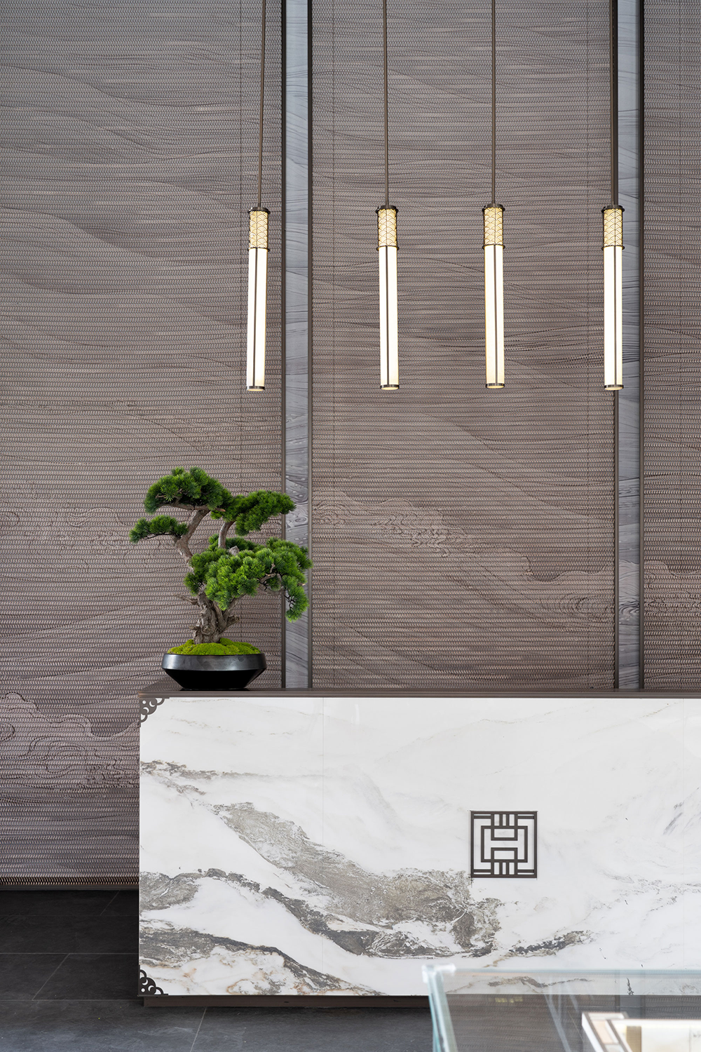 能否留下一个好印象设计样式当然至关重要我们以前也分享过一些大理石前台但是中国风的大理石前台更能让人眼前一亮