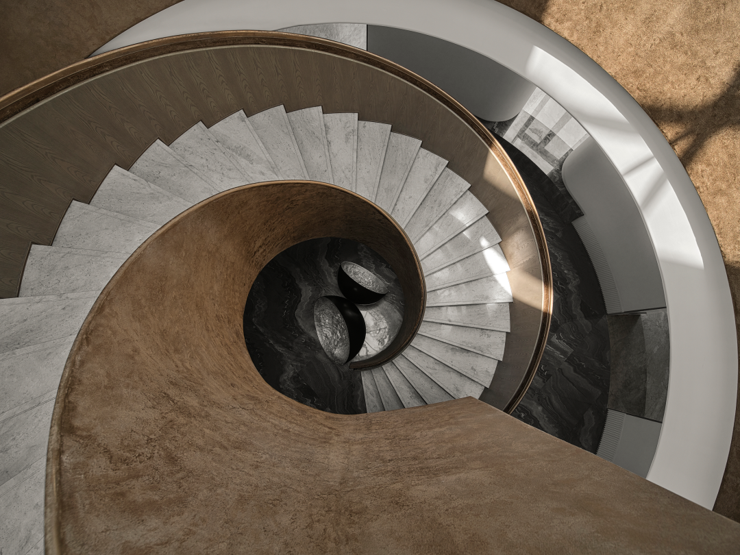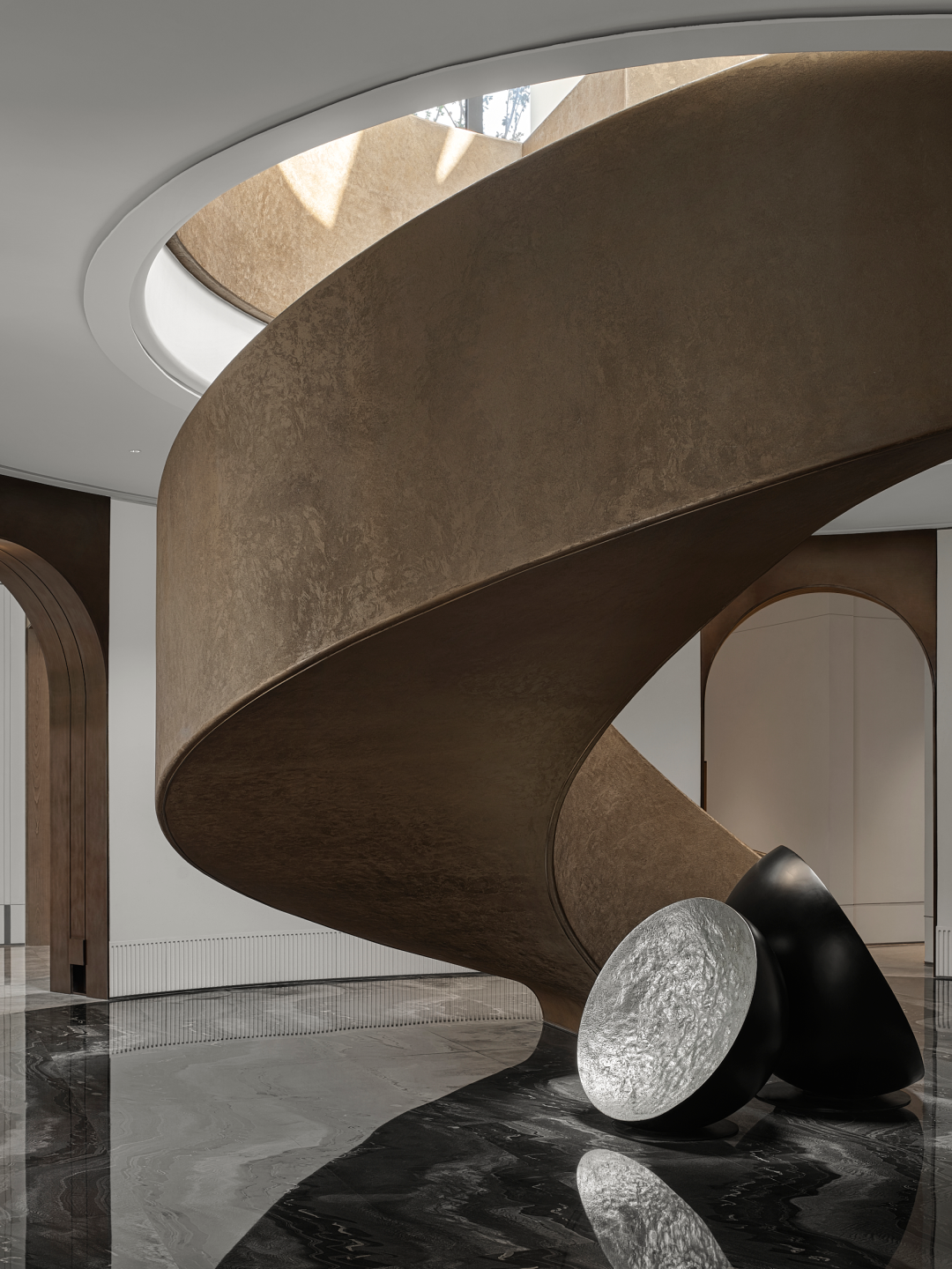 逐月之序-月升空谷 The Preface : The Moon Rises From the Deserted Valley把月的运转轨迹抽象化,螺旋分形的结构将月球轨迹呈现于此,山水之间,月升月落,潮起潮落,是自然万物的规律和生命宇宙的循环往复。