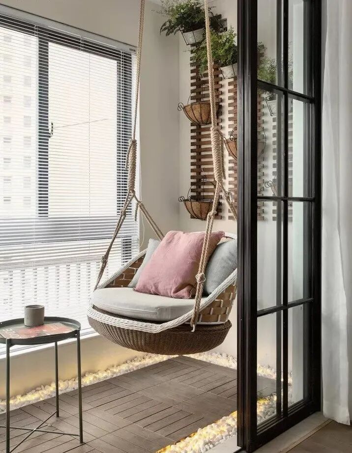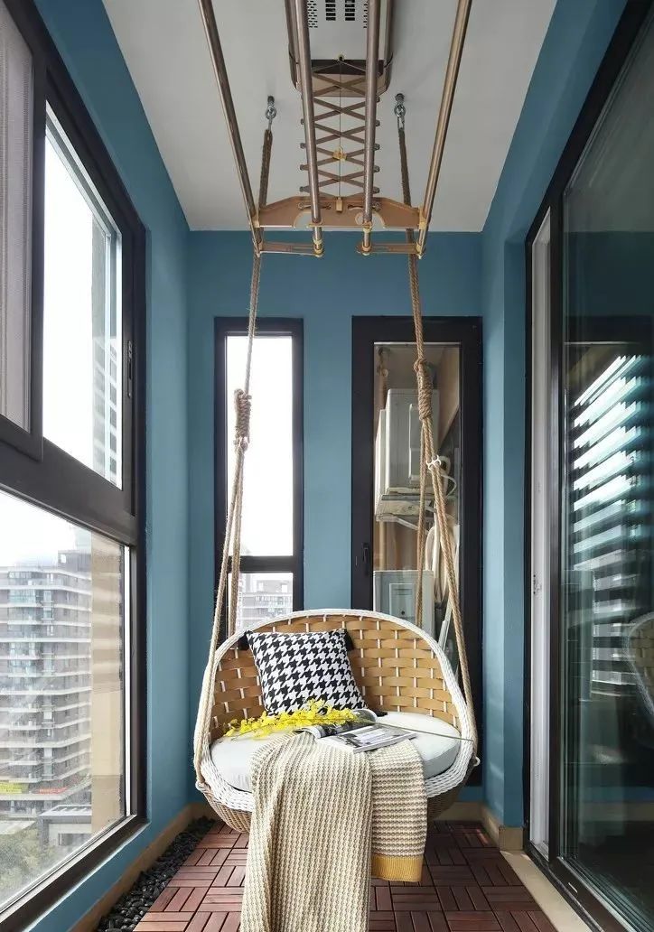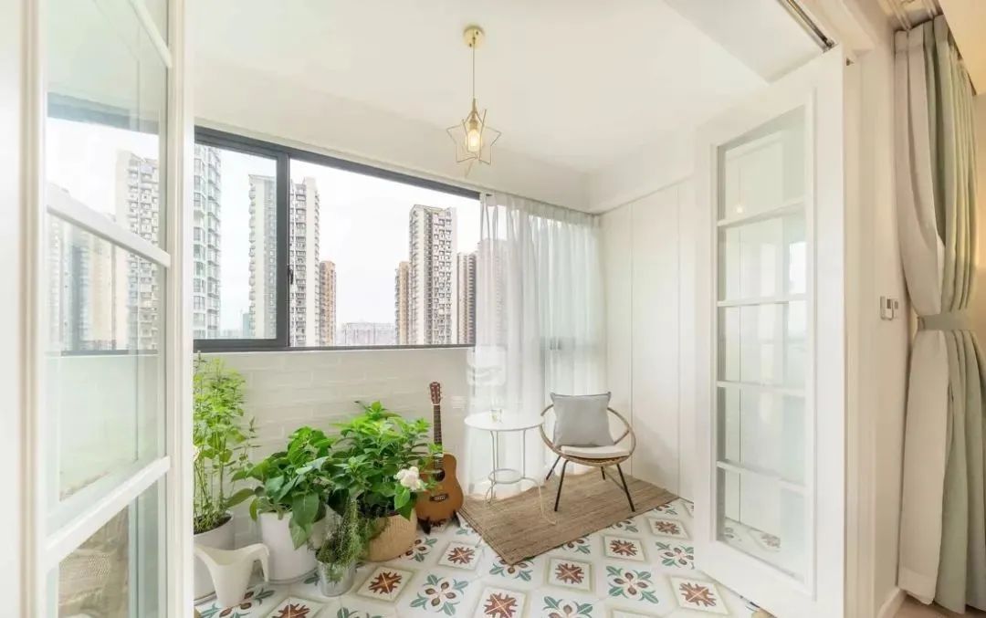 把阳台抬高:这种做法是把阳台抬高,铺上地板后,直接作为矮地台使用,随便放个小桌子,几个小坐垫抱枕就能变成一个休闲区。