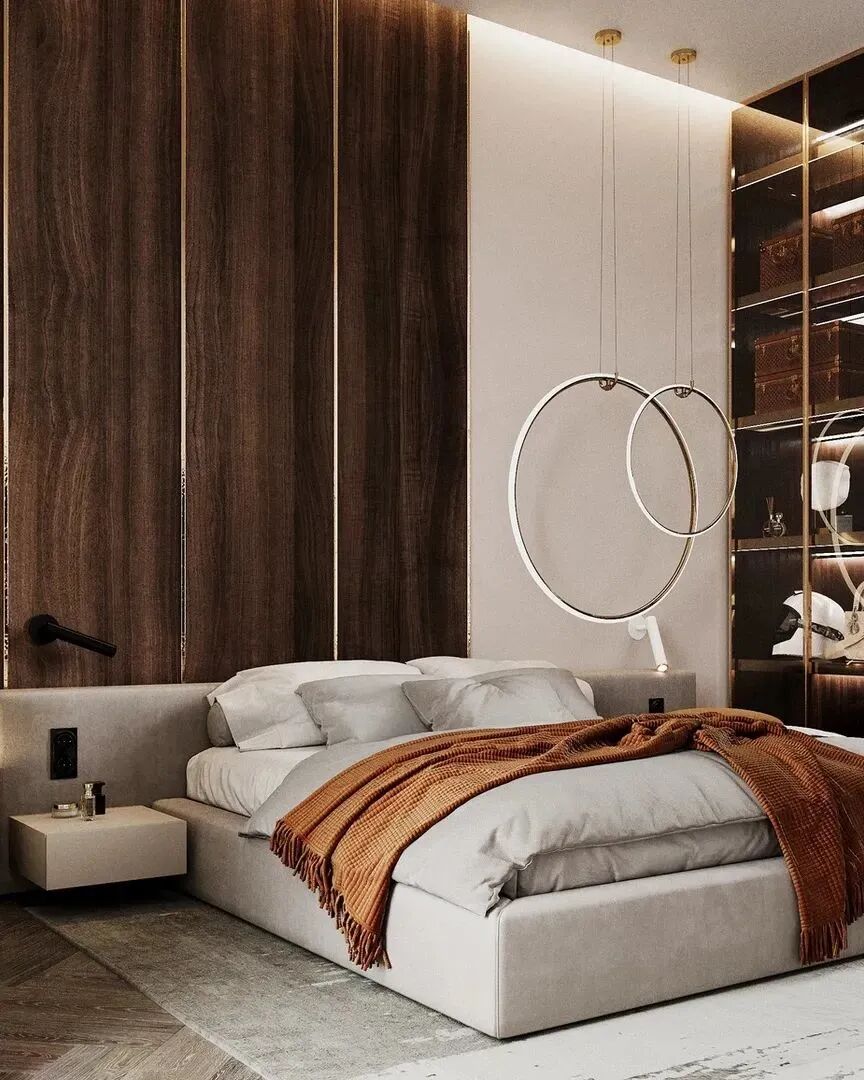 二楼空间延续了一楼的极简风格,凸显整个空间当中的高级性。色彩斑斓的天然石材点缀在墙面上,木石搭配的视觉冲突,相当醒目。