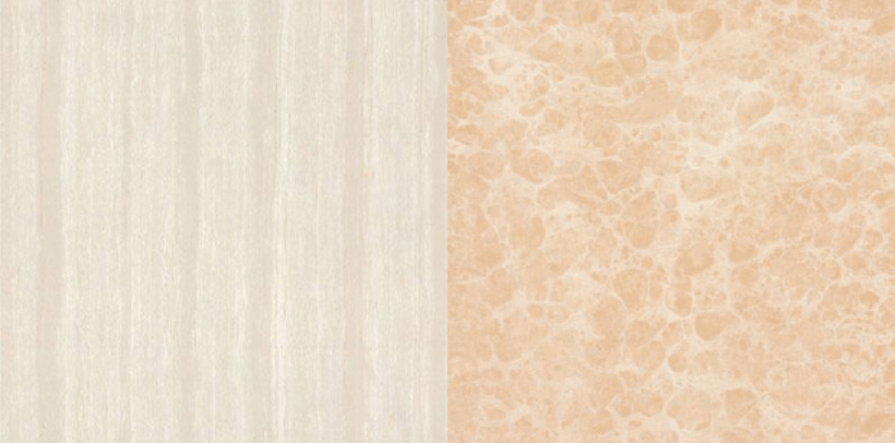 2、通体砖:不上釉,正反色泽都一样。花色不如釉面砖,防潮防滑也耐磨,不过因为有很多凹凸气孔会滋生细菌,所以不适合用在厨房和卫生间。