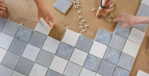 不同尺寸、款式和颜色的瓷砖,按照一定的组合方式进行铺贴。