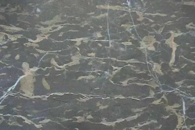 分直纹、乱纹两种,故开荒料的时候要注意纹路方向,其纹与乱纹的效果与银线米黄的直纹、乱纹有些相似,此板的见光效果不理想,打磨较困难,板面不稳定,有时黑纹较集中,黑纹集中的地方往往孔洞也多,需胶补,此板极易碎。