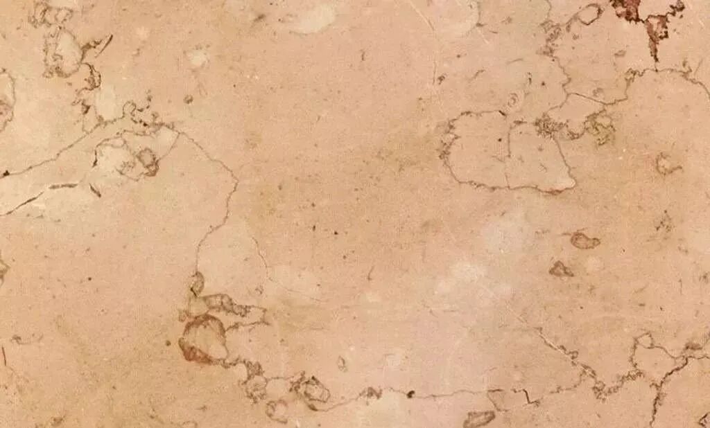 产地中东,英文名BEIGE PORTOFINO,这种石材底色米黄,红筋均匀分布,主要应用在室内。常见缺陷是色差大,有红斑,泥状孔洞多,花纹差异大,大面积白花(白花以越少越好)。