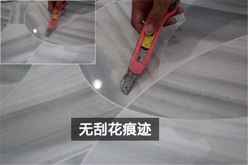 在选购前先检查瓷砖表面的质量,可以用硬物刮一下,看耐不耐刮。瓷砖的硬度高,产品就耐磨;这就是从痕迹看品质。