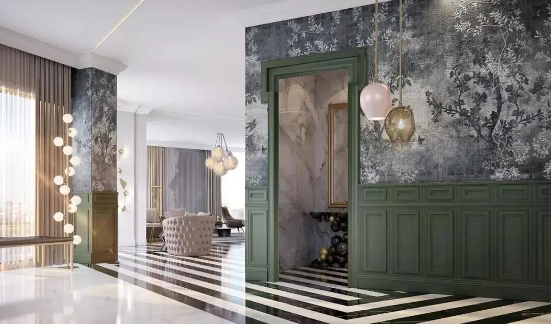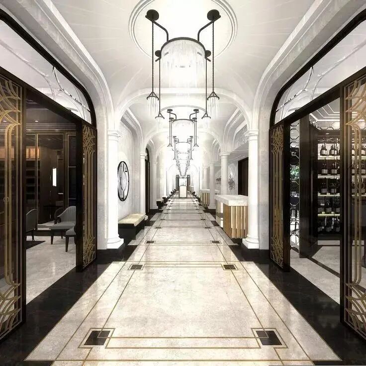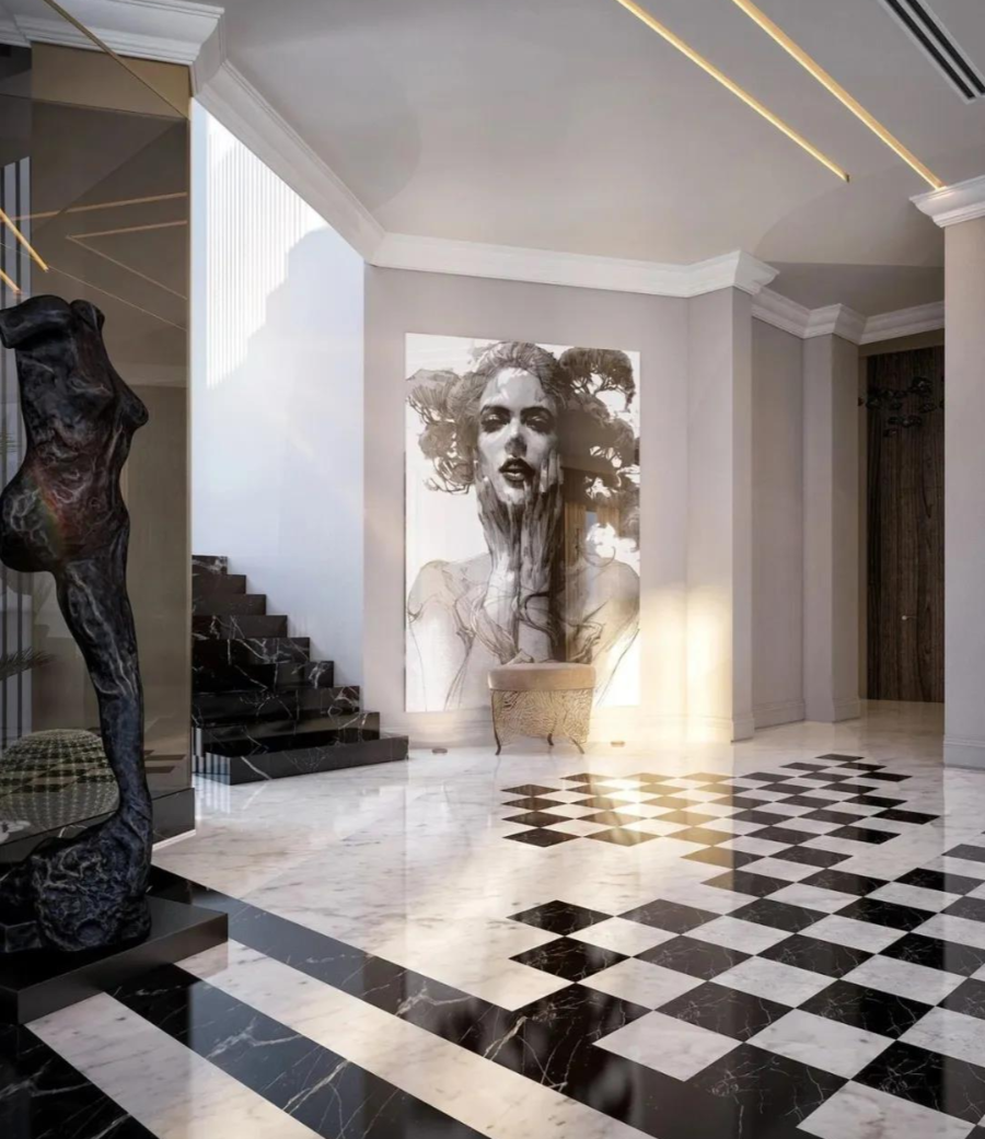 在石材设计上,拼接不同花色的大理石,组成不同的图案,纹样丰富,创作性灵活自由,启发了许多设计师的创意思维。大理石地面拼接设计,也能如此多姿多彩。