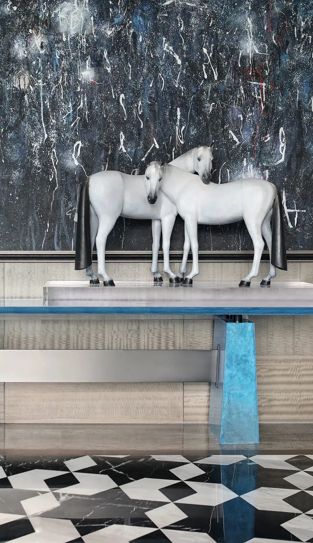 金属的高冷质感搭配大理石的温润内敛,生出一股极强的艺术张力,大理石和金属元素的巧妙镶嵌打造出轻奢感,时尚不浮夸,典雅不枯燥。