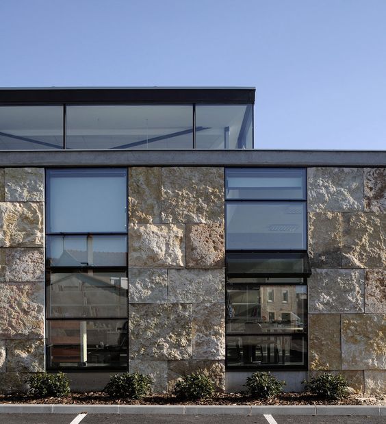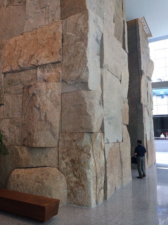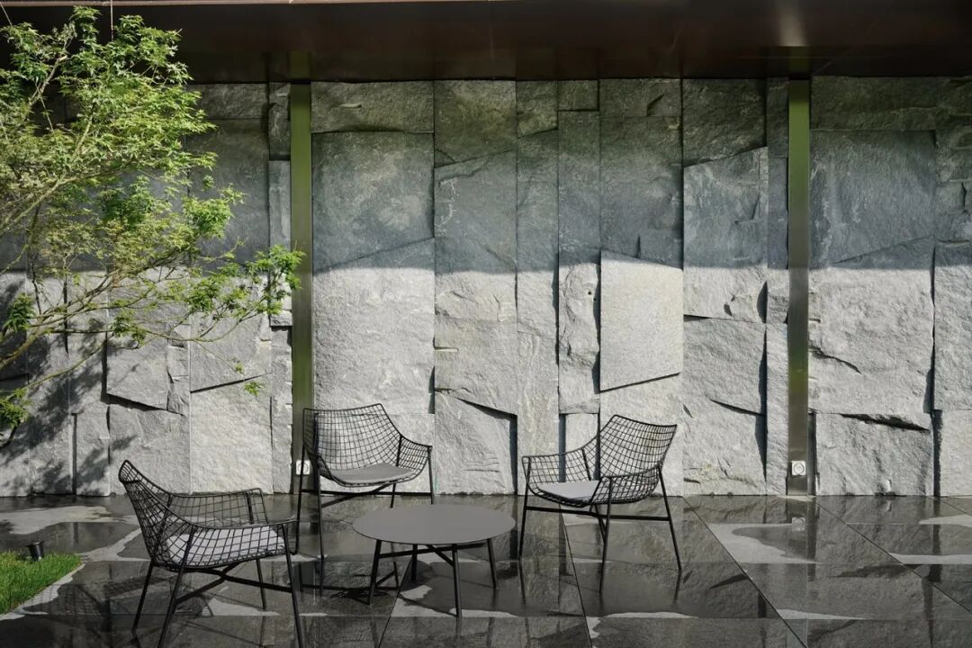 设计师对这种肌理情有独钟因为天然石材的特点是厚重而稳定但天然石材的自然断裂面打破了它们原有的秩序和连续性而用一种残缺之美使建筑物呈现出犹如纪念碑般的崇高感