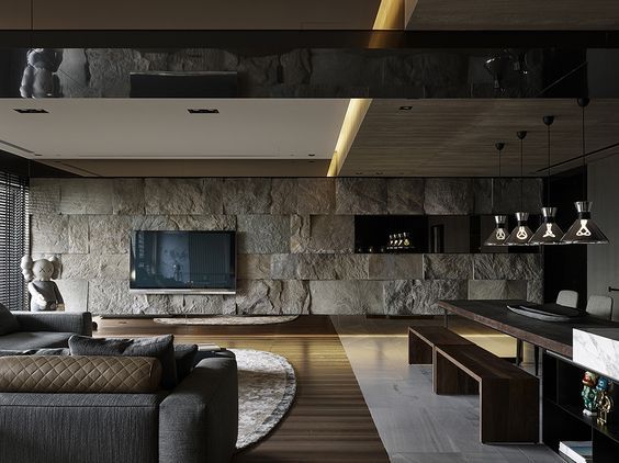 现在,越来越多的设计师开始在室内使用天然石材自然断裂面,这种粗犷的材料质感,别有一番特色。比如,当代台湾设计界领军人物唐忠汉老师的拓扑系列,就大量使用了这种材料,从而形成了自己独特的设计风格。