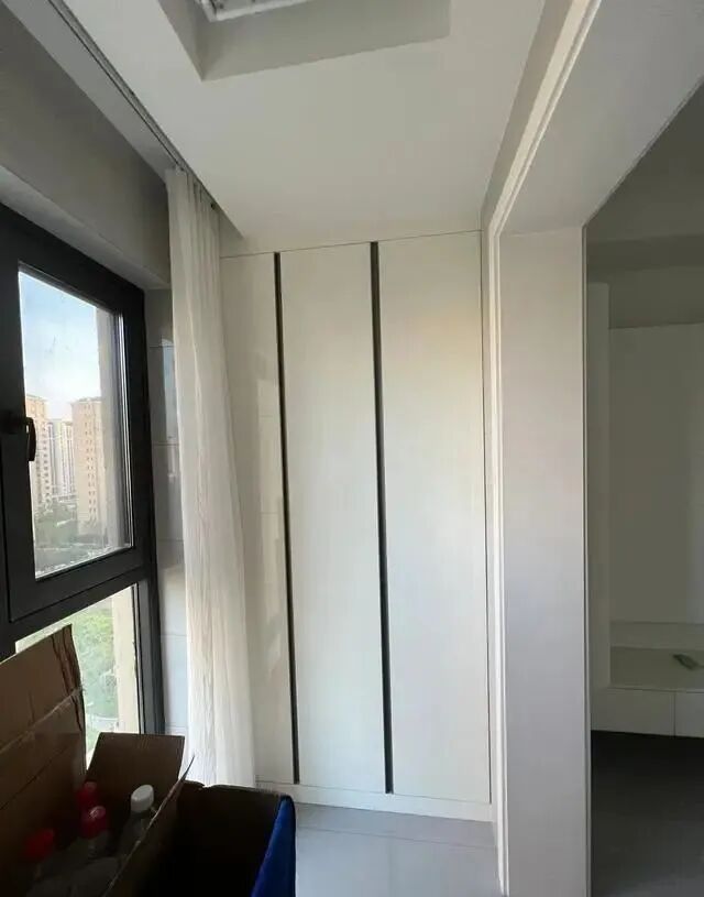 阳台另外一边定制了直接到顶的储物柜,很实用,非常值得学习呀。所以大家还是把阳台封起来,利用率更高呢。