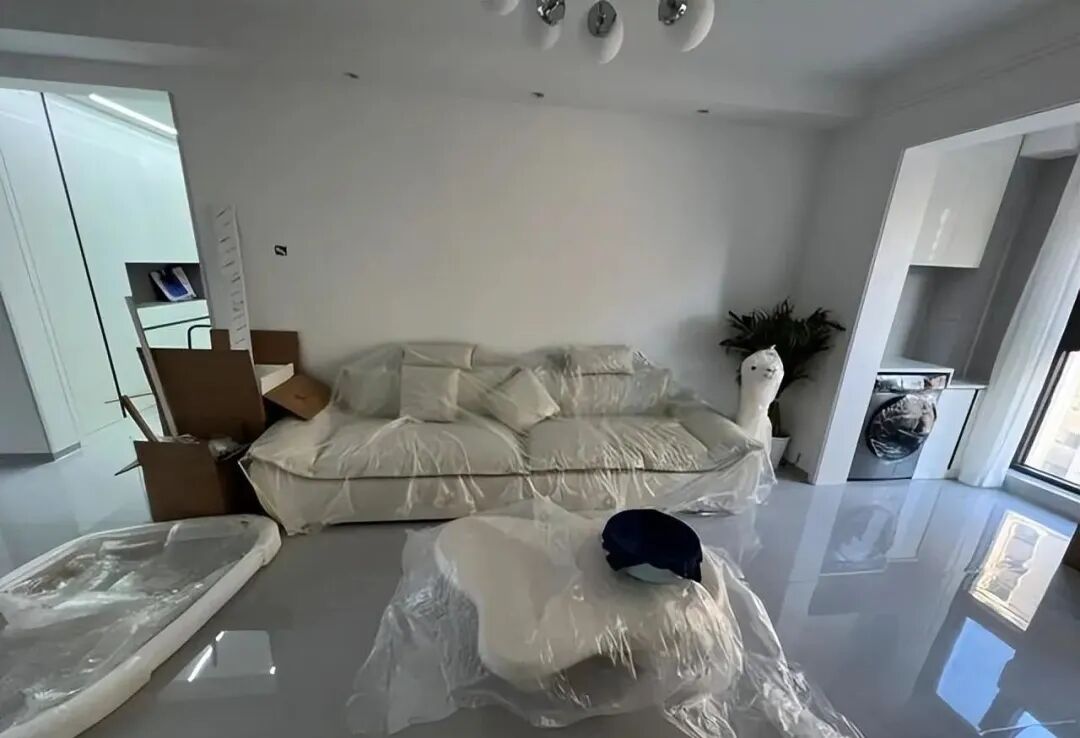 客厅正在慢慢搭配沙发茶几,不过塑料膜还没来得及撕开,不影响效果哈。到时候,沙发墙上挂装饰画,效果会更完美。客厅与阳台打通,作用很大,外面不管是下雨还是刮风都没有任何影响呢。家里建议还是把阳台打通,会更合适。