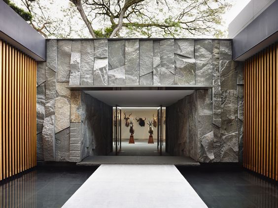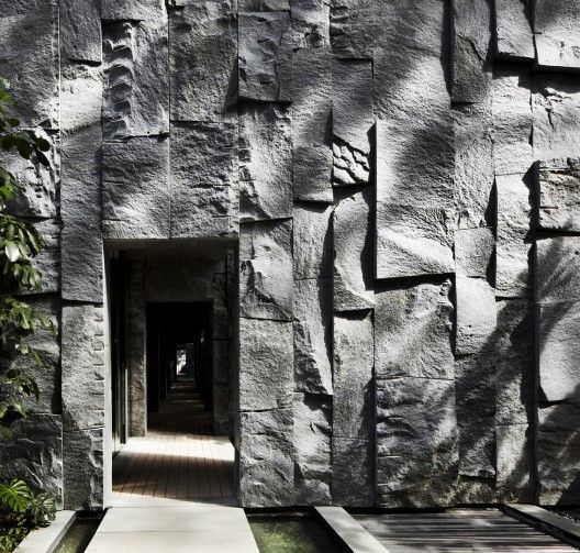 设计师对这种肌理情有独钟因为天然石材的特点是厚重而稳定但天然石材的自然断裂面打破了它们原有的秩序和连续性而用一种残缺之美使建筑物呈现出犹如纪念碑般的崇高感
