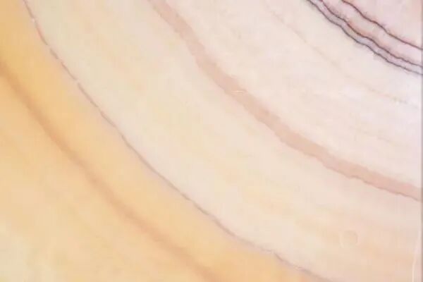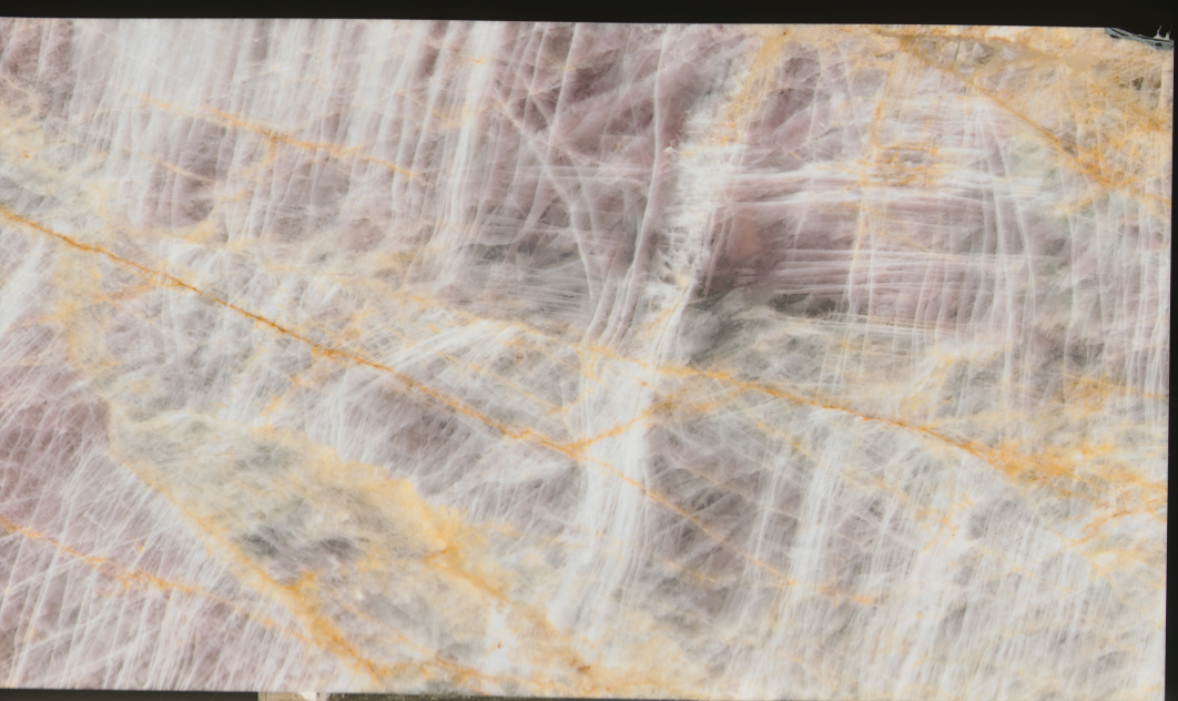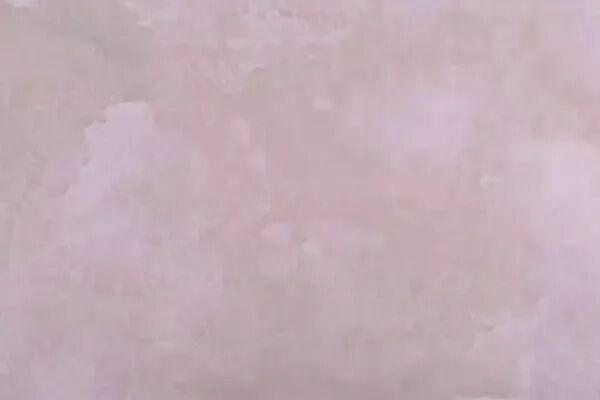 产自伊朗,底色为浅紫色、粉色,版面带有白色絮状纹理,少部分带有黄色、黑色斑纹。裂纹较少,无孔洞,石质细腻,通透性强。