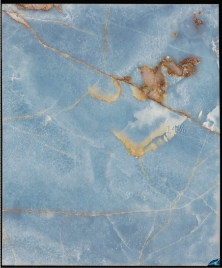 产自伊朗,版面呈蓝色,带有少许絮状小花,有裂纹及纵向黄线,版面质感细腻柔和。