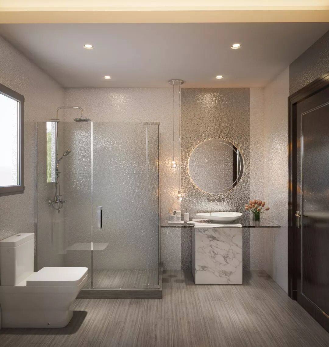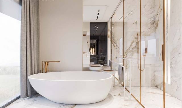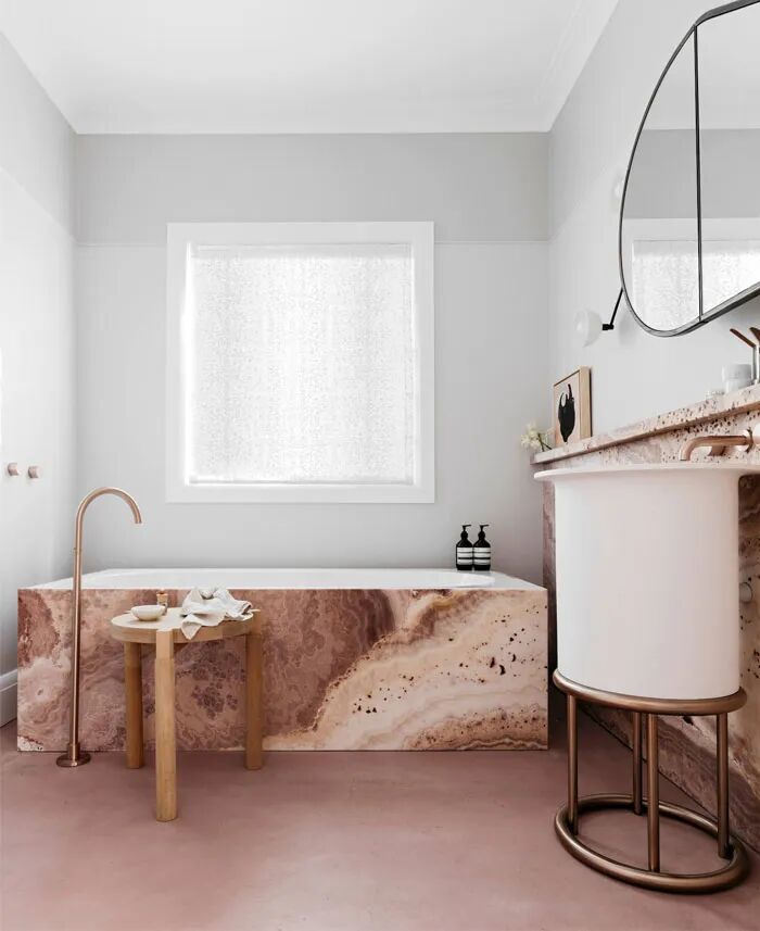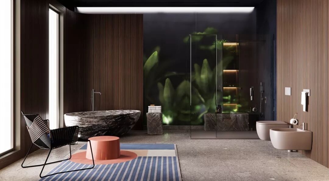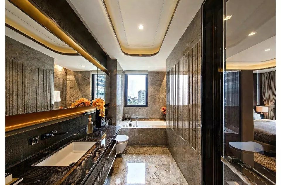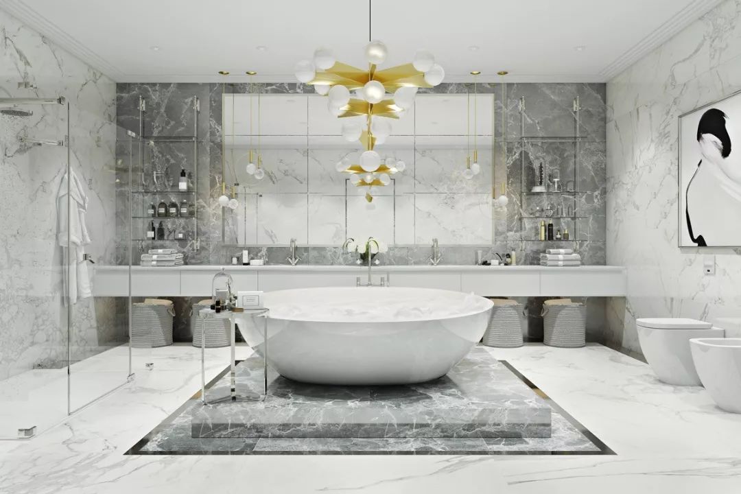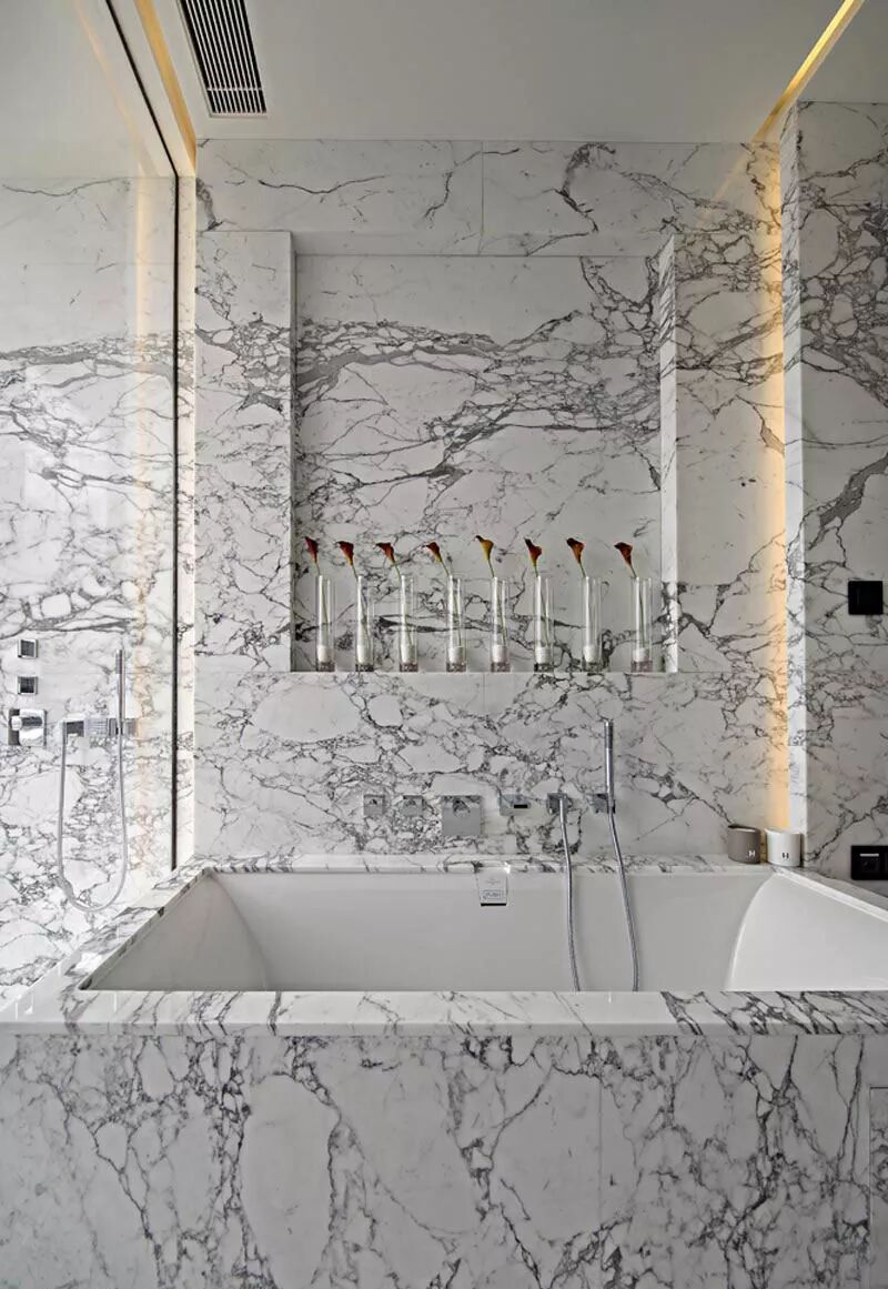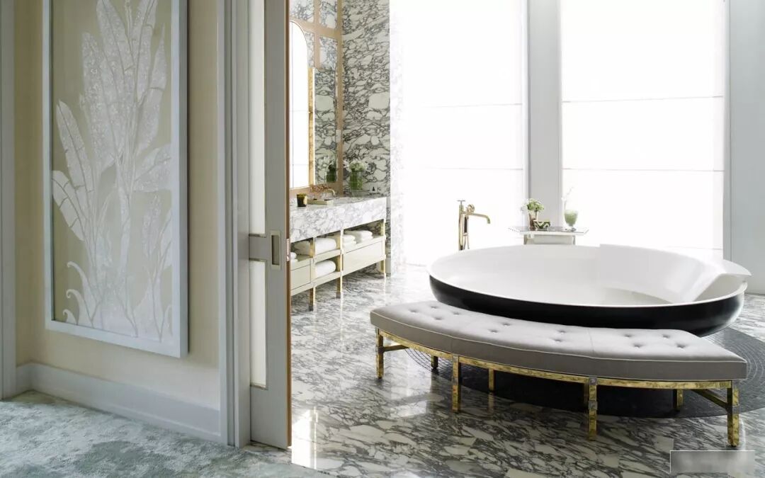 随着人们生活水平的提高,在浴室中铺设大理石或花岗岩等天然石材已逐渐成为一种时尚。人们一般喜欢采用大理石作为洗脸台的装饰台面,而浴室的地面和墙面则选用较为高档的天然石材来装饰给浴室平添了几分高雅的格调。