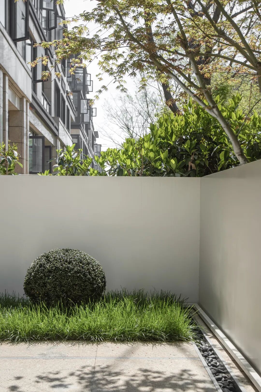 因贪恋窗外那一抹光线与绿荫,我们将落地窗之间的墙体做成了黑色,让它尽可能的"消失",并将庭院处的金属围墙做成白色,让更多的光线可以反射入室内。无论是餐吧就餐还是客厅小憩,视线所及都是美。