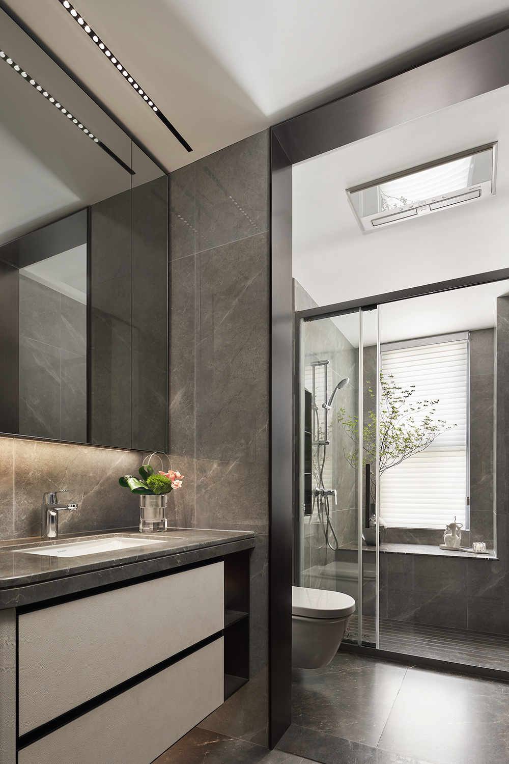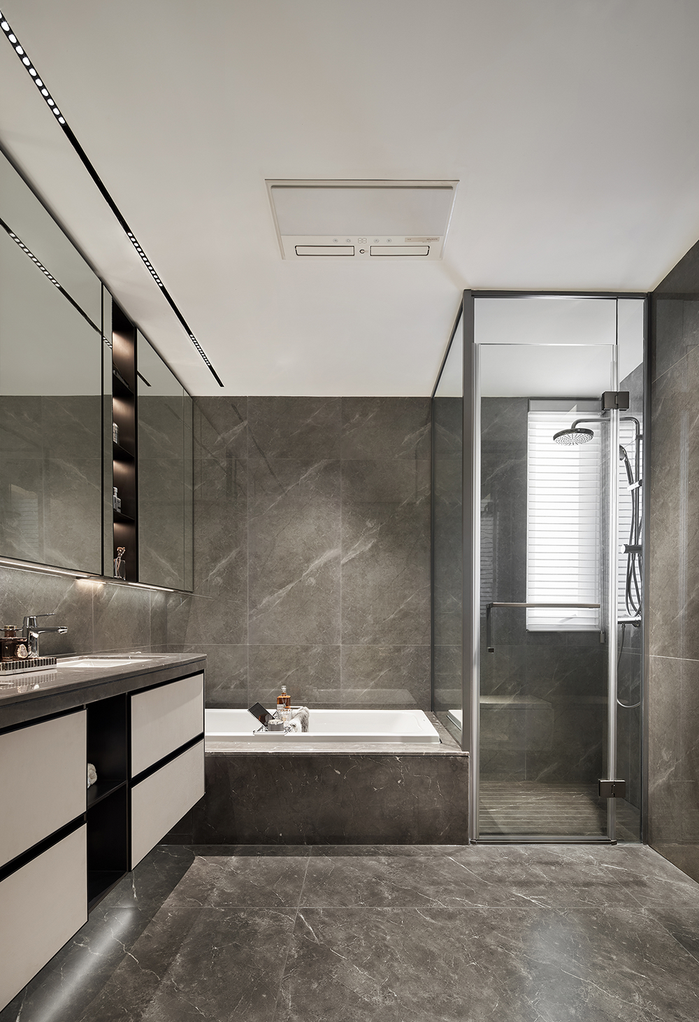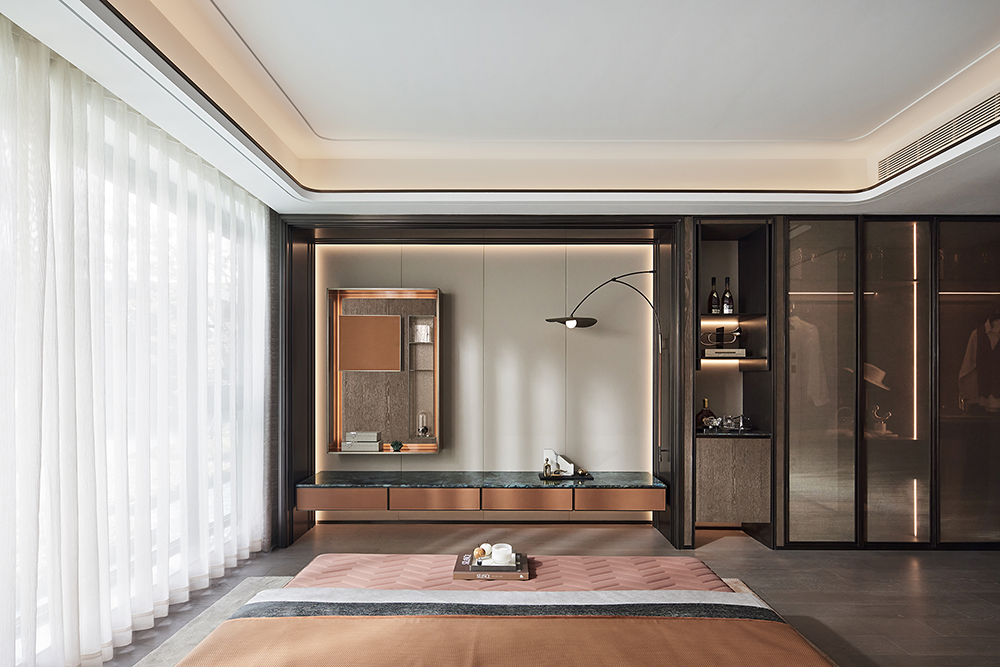 奢阔尺度,不止于居所的公共场域,更关乎独享的私密场域。主卧套间格局清晰明了,功能配置丰富,在细节把控、审美情调上于人性化角度着手,旨在透过设计的点滴为生活构建美好感受。