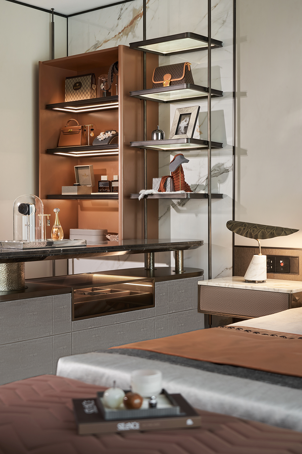 所谓奢华感,不过是品味私享领地的奢适度。触手可及的质感,至精至简的设计,以及光影与色彩的巧妙点缀,轻松隔绝外界纷繁,安享生活本真。