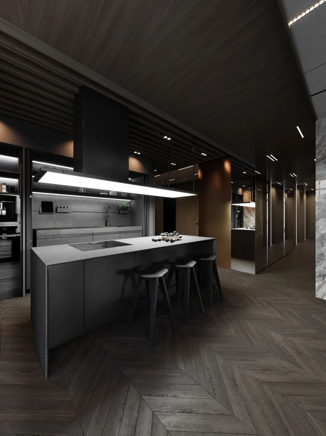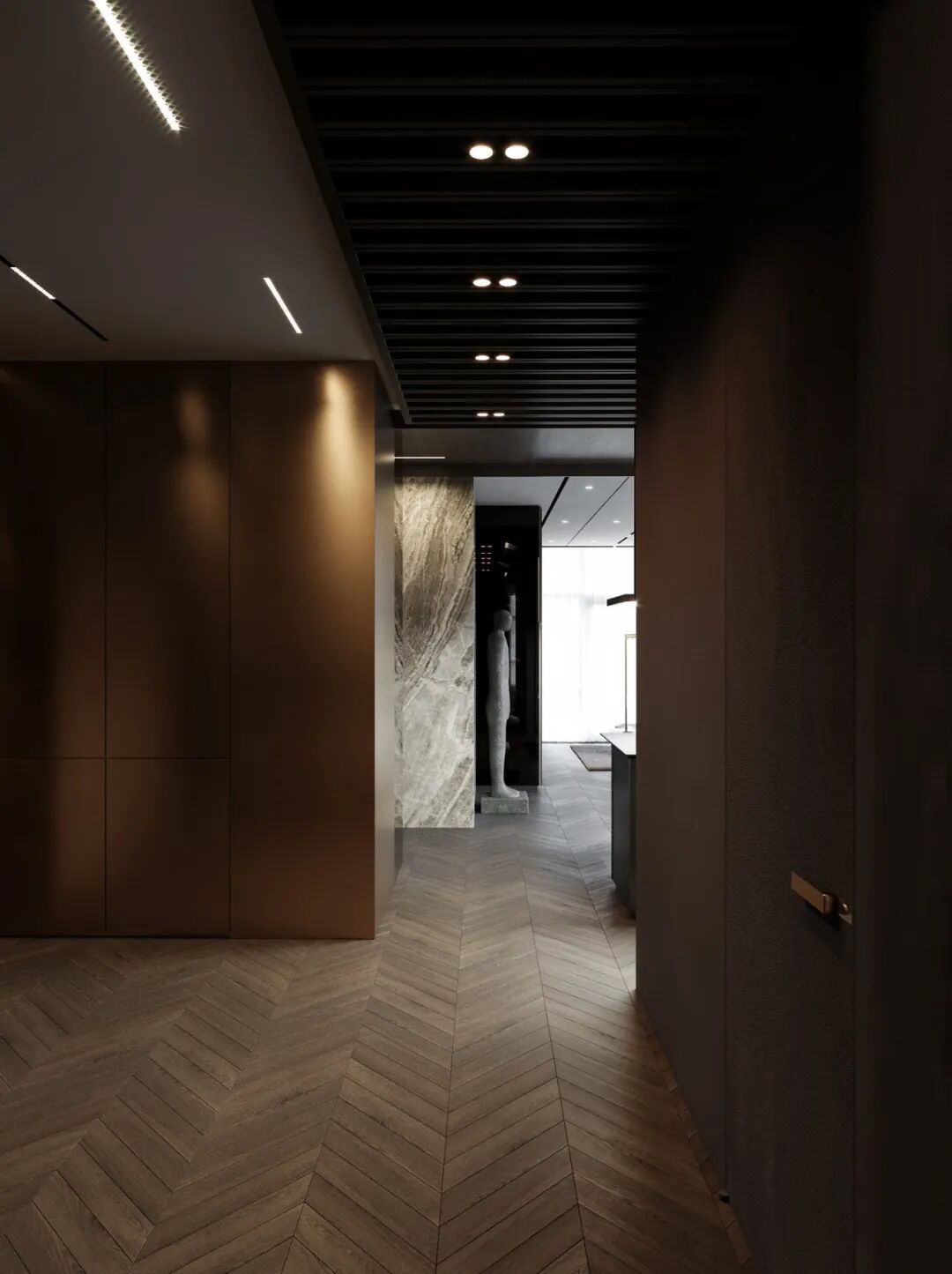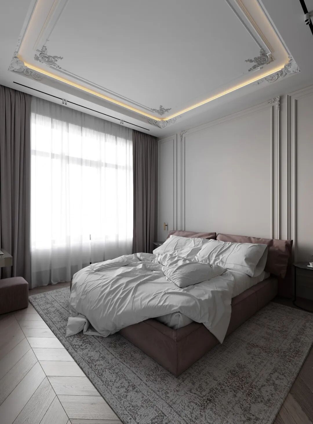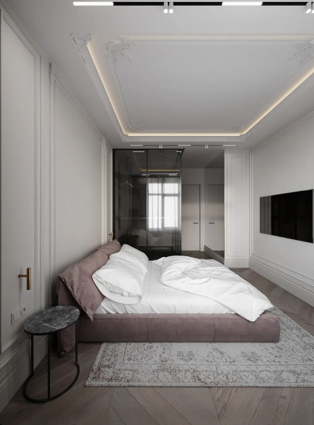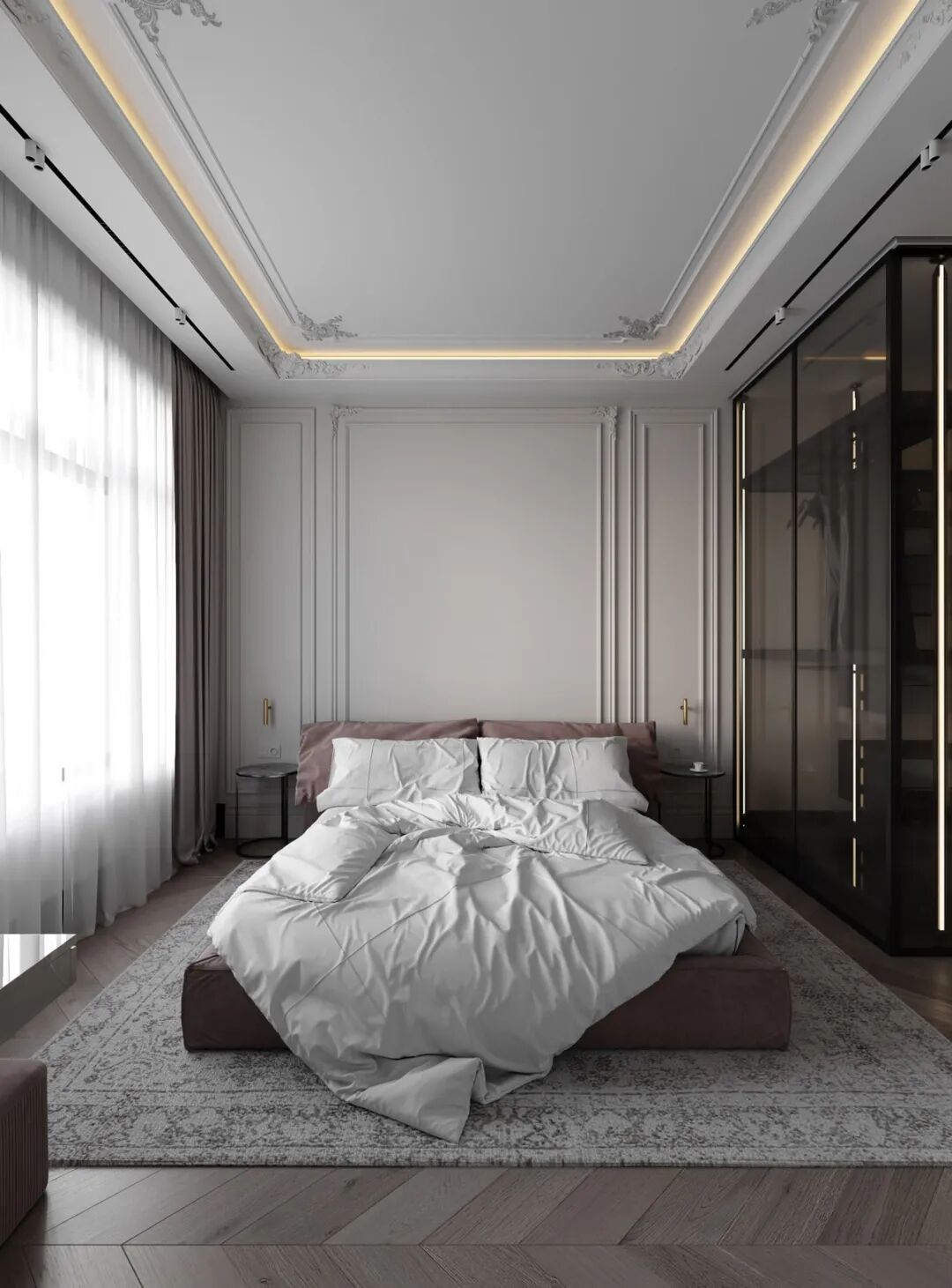 Konstantin Kildinov新作,在一个拥有自己历史和不同寻常的建筑公寓项目中,材料的选择、纹理的组合、颜色的搭配,透射出经典的魅力。没有简约的单调和随意,通过灯光的装饰设计而更突出“奢华”感,选用高档材料,奢侈饰品,强调功能实用装饰。