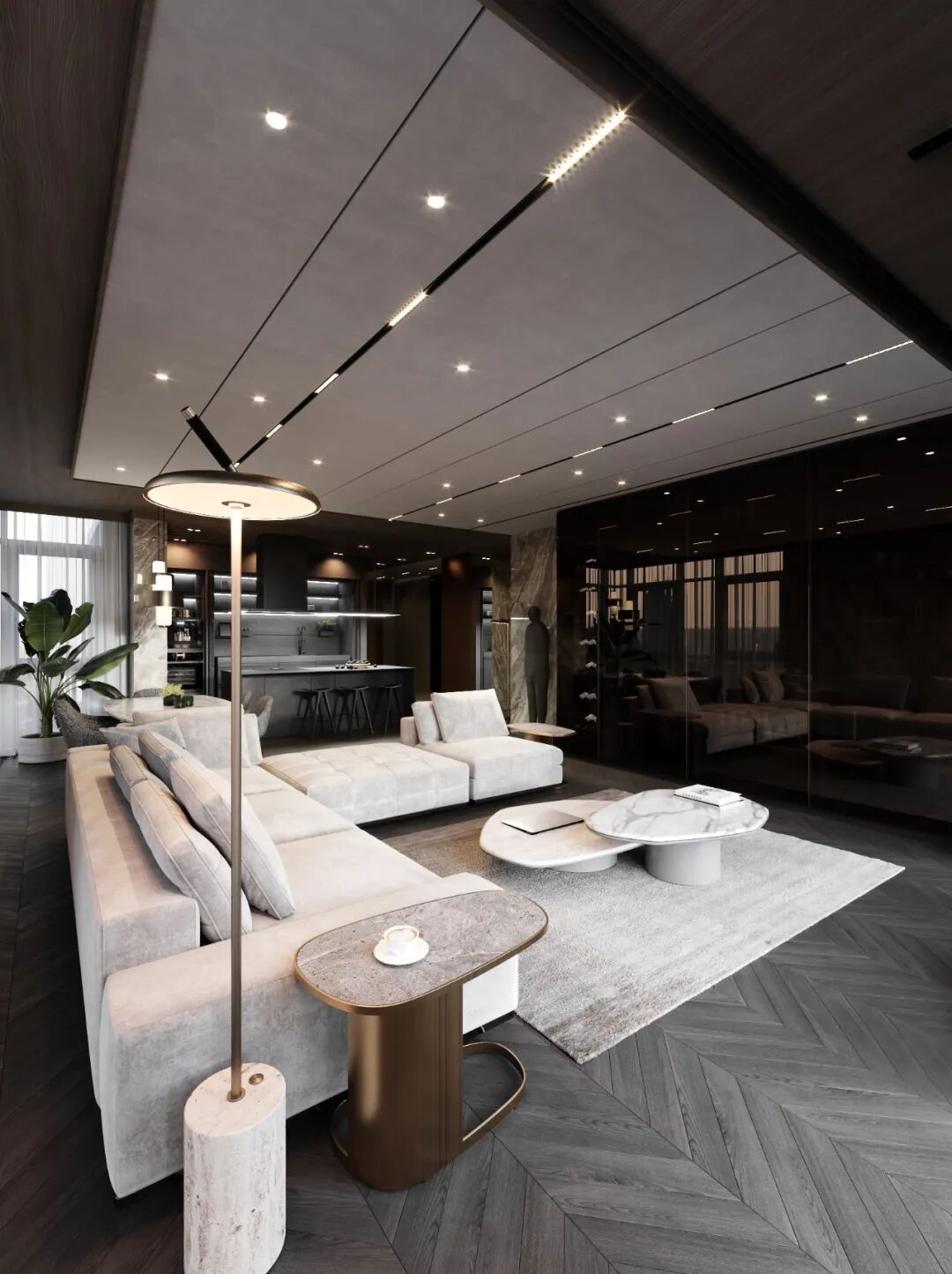 以现代轻奢为基础,运用设计师独有的创作方式,而灯光的运用更是出彩,注重材料选择、纹理组合、颜色搭配,将简约别致的现代风格和光洁质感融合在一起,空间层次丰富干净利落。