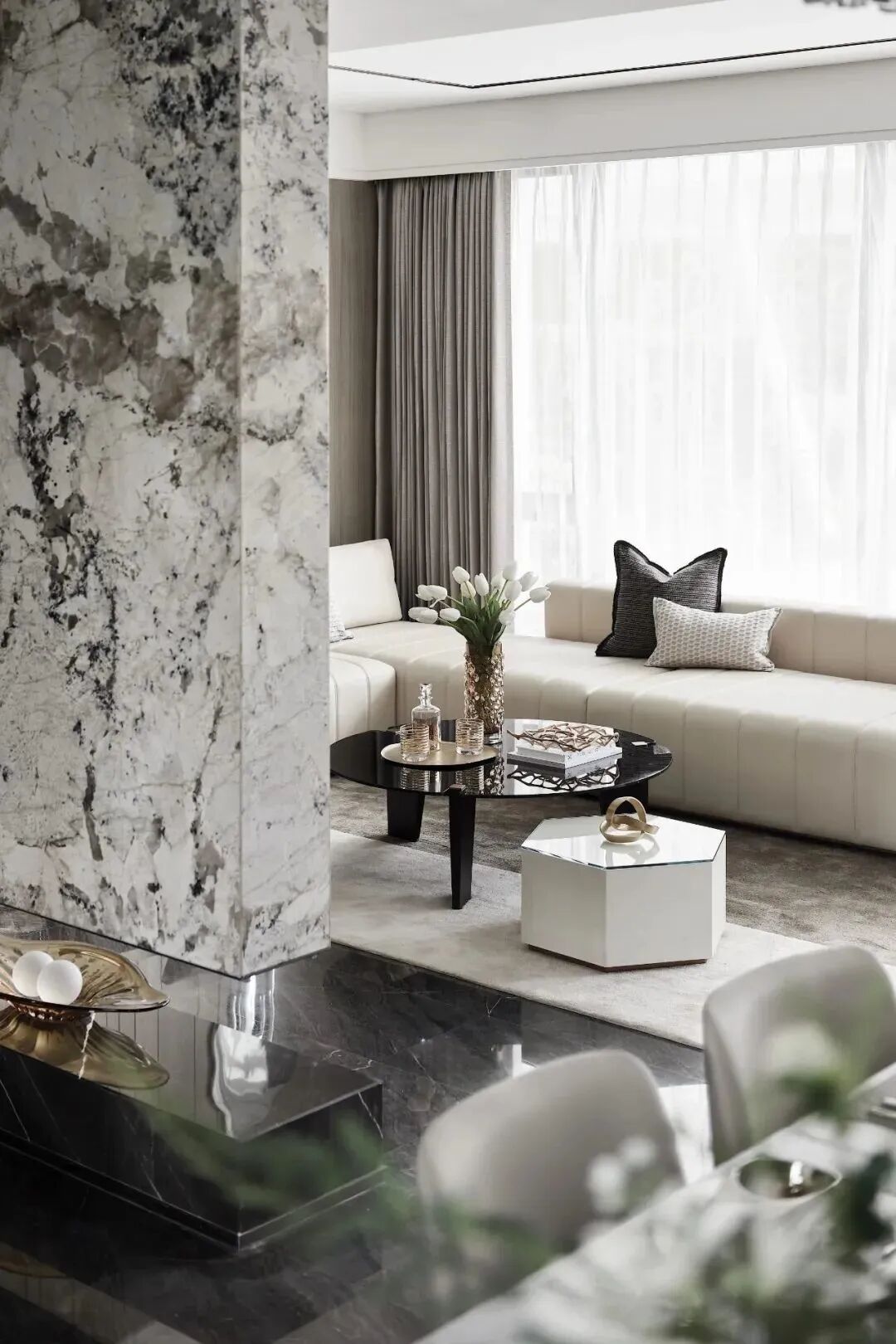 大理石也是天然石材的一个品类,他是一种常见且经济实惠的选择。它具有均匀纹理和颜色,能够营造高雅典雅的装饰效果。无论是地板、墙壁、台面还是浴室,大理石都可以胜任。